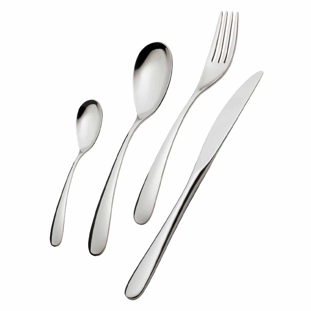 24 bestick i rostfritt stål med modern design med blank yta, tillverkad i Italien.
