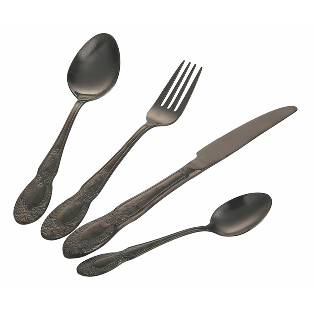 Komplett bestickset i satenguld eller svart design 24 delar.