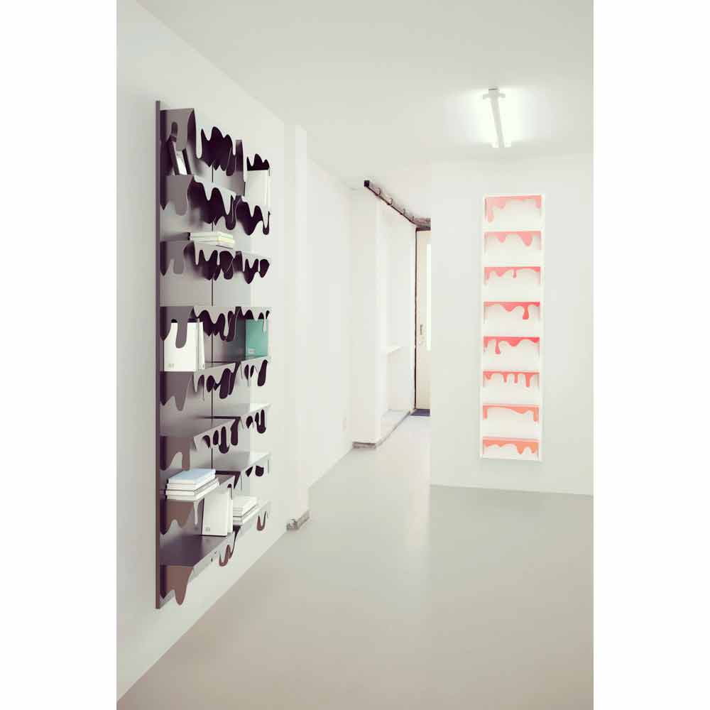 Kolata är en ursprunglig bibliotek från målad järn väggen, ett komplement som förser miljön och samtidigt är mycket funktionell, tack vare den dynamiska formen av hyllorna som ger en titt på hela pop.