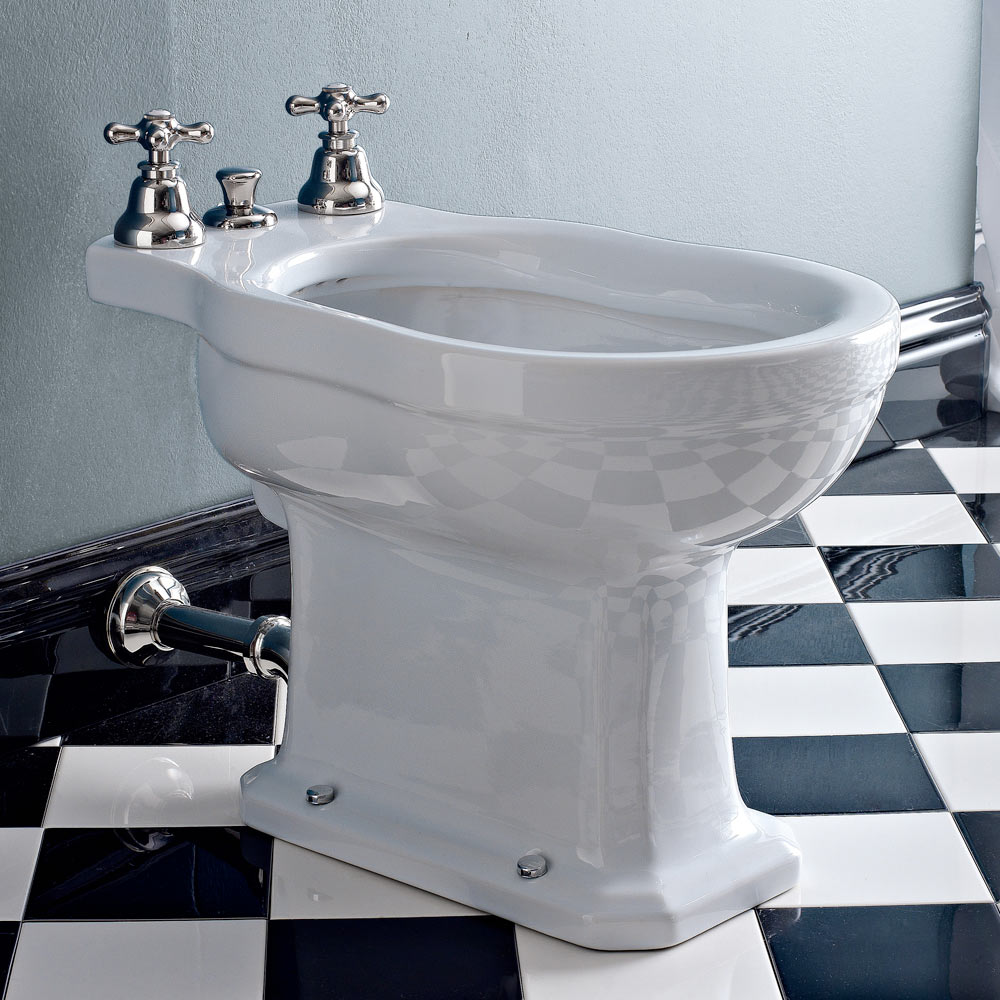 Vit keramisk bidé i klassisk stil tillverkad i Italien, Marwa.