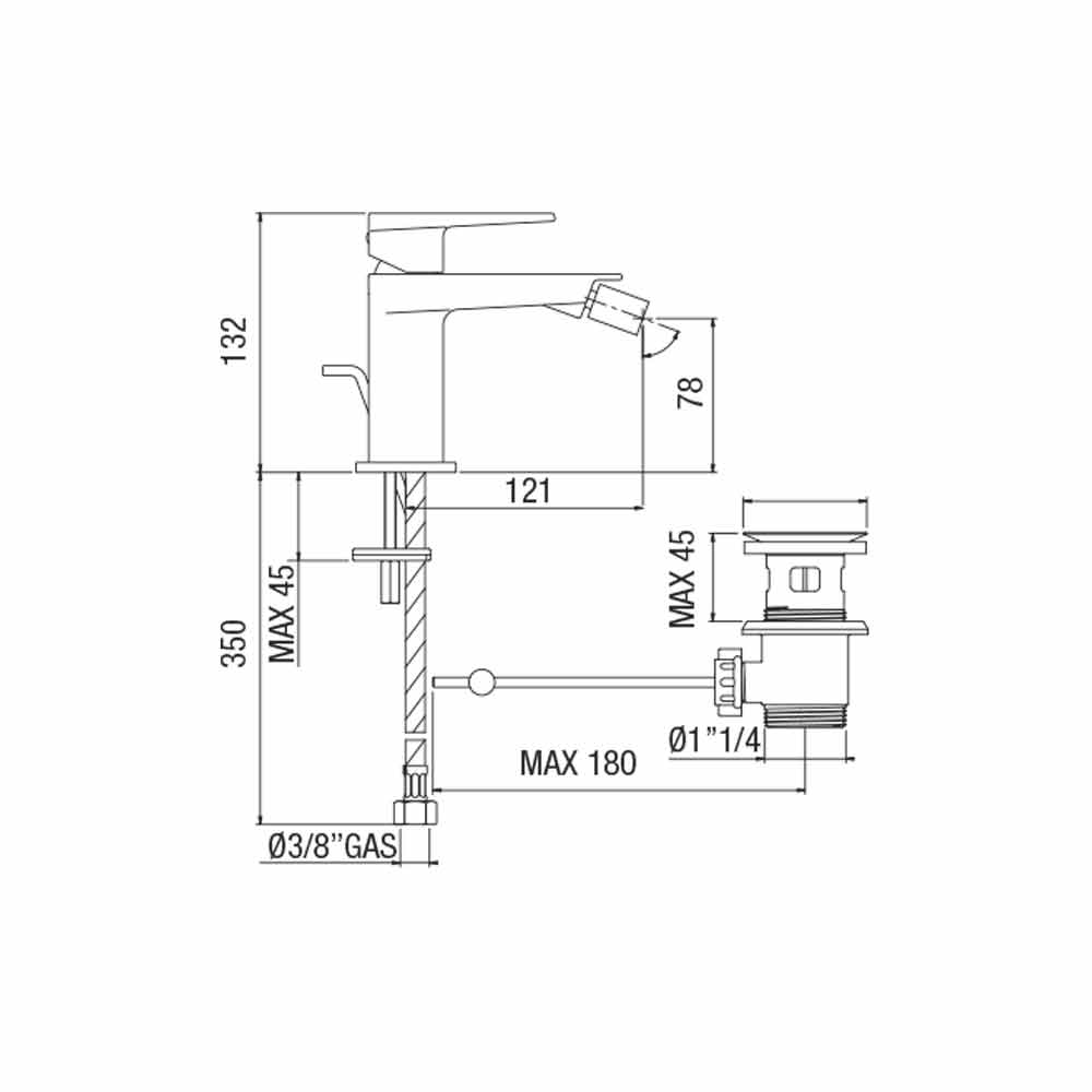 Modern bidéblandare i förkromad mässing med avlopp från Made in Italy.