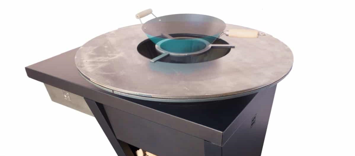Under användning hålls den oljad och rengörs från livsmedelsrester under tillagningen genom att skrapa ytan med en spatel och skjuta bort den borttagna resterna i elden.