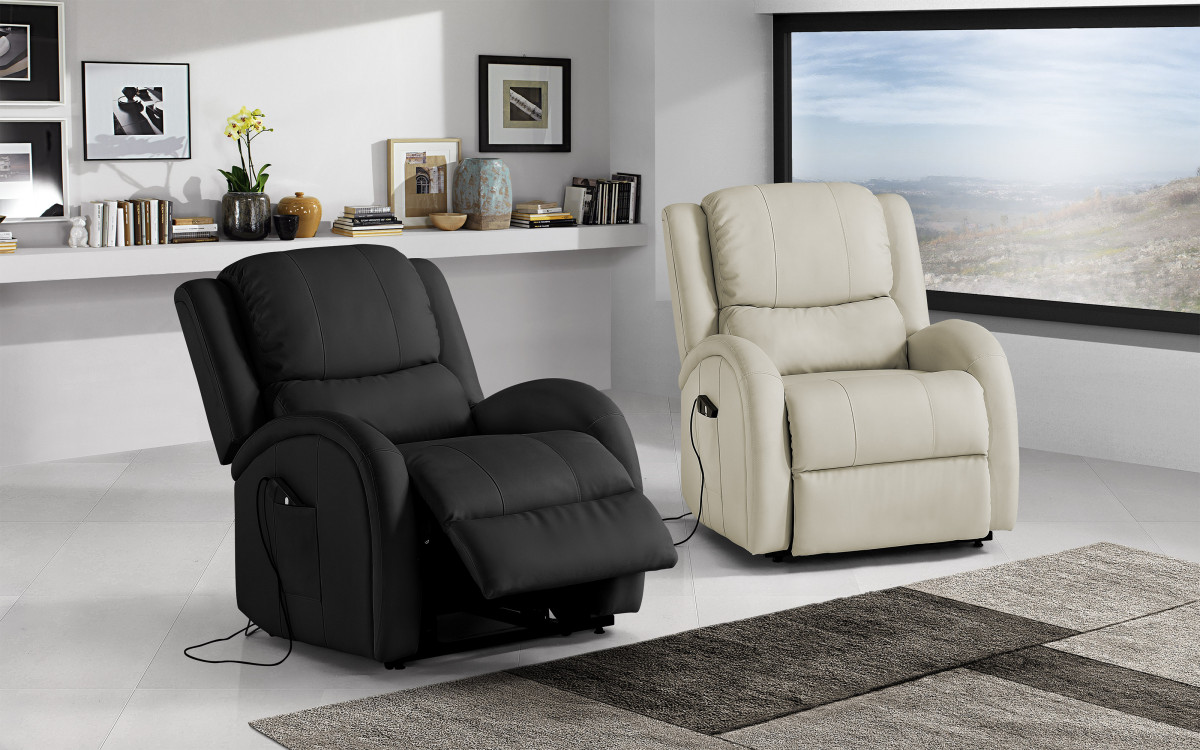 Koppla av fåtöljer med en motor, har den klassiska synkroniserade rörelsen, som först aktiverar fotstödet för att få det till ett vågrätt läge, sedan lutar ryggstödet, naturligtvis finns det ett personlyftsystem.
