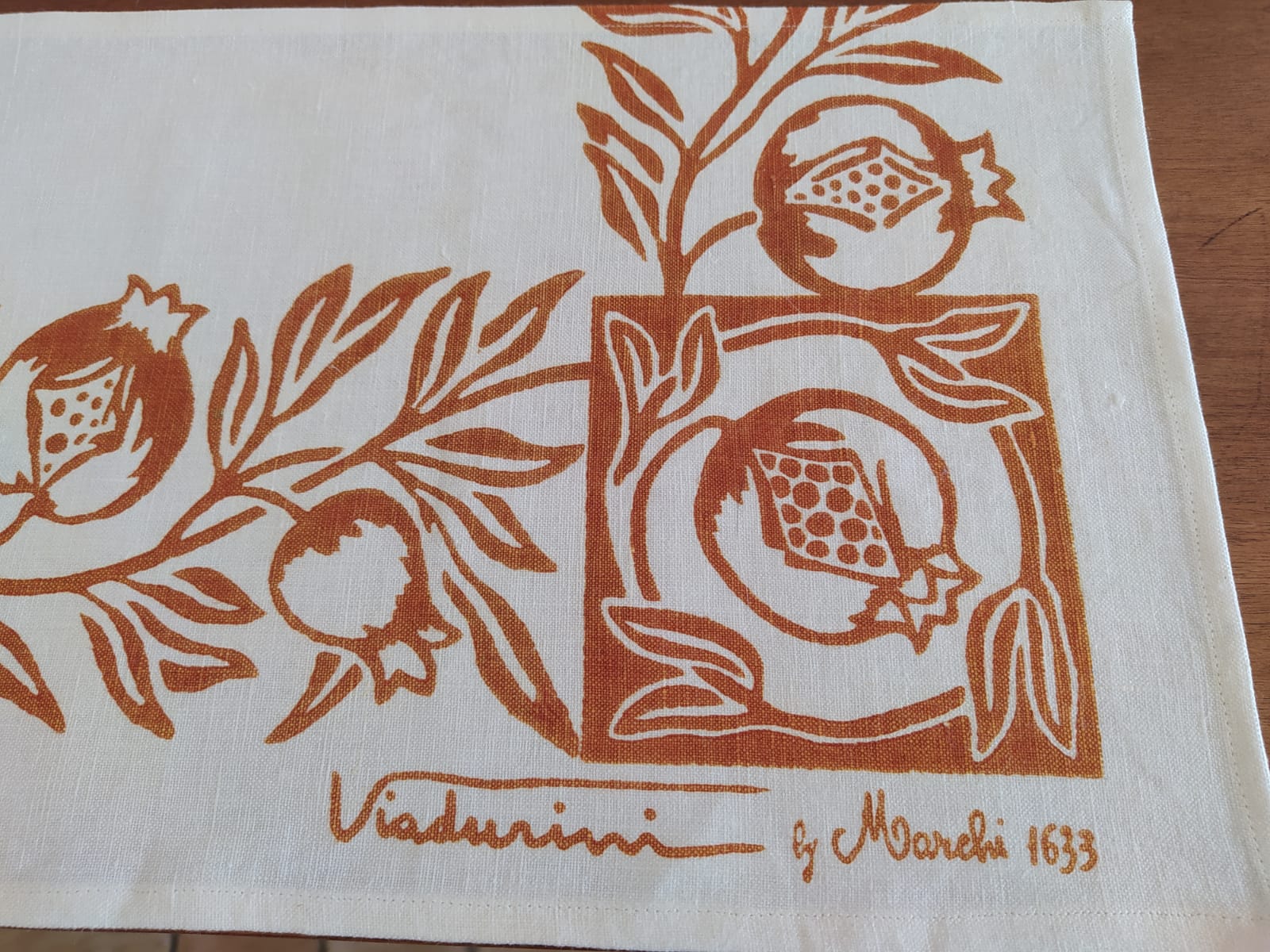 Idag på Viadurini webbplats hittar du de exklusiva föremål för tabellen och kök görs med handtryckta tyger från Marchi familj med hjälp av en gammal trä mangel, designad av Leonardo da Vinci, fullt fungerande sedan 1633 och förblev enda exemplet i världen!