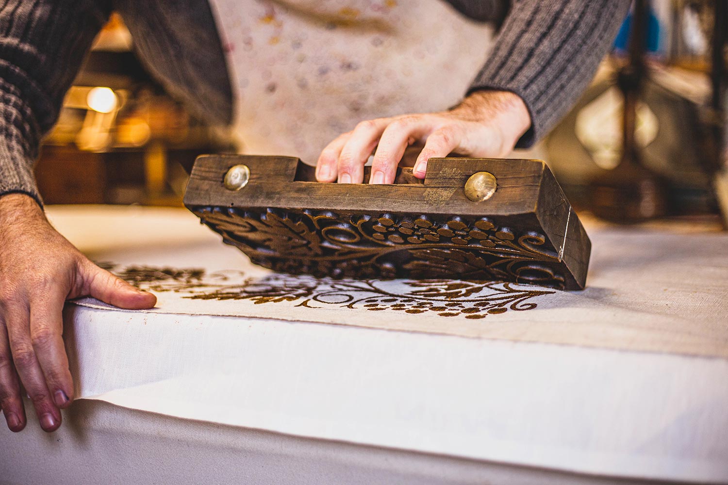 Den Antica Stamperia Marchi förblev den sista workshop för att producera dessa utskrifter med mangano teknik, en gammal press kan behandla duken, stryk det, utjämning det upp att göra det blankt och kompakt. En unik procedur, italiensk hantverk, botades i varje detalj med hjälp av ultra-hundraåriga traditionella verktyg med tekniker överlämnade från generation till generation av Marchi-familjen.