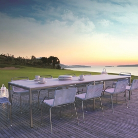 Och för en oförglömlig och magisk frukost, lunch eller middag i trädgården erbjuder vi dig ett brett urval av bord med glas eller keramisk topp, rektangulär, rund eller oval för att kombinera med stolar koordinerade med utformningen av ditt favoritbord.