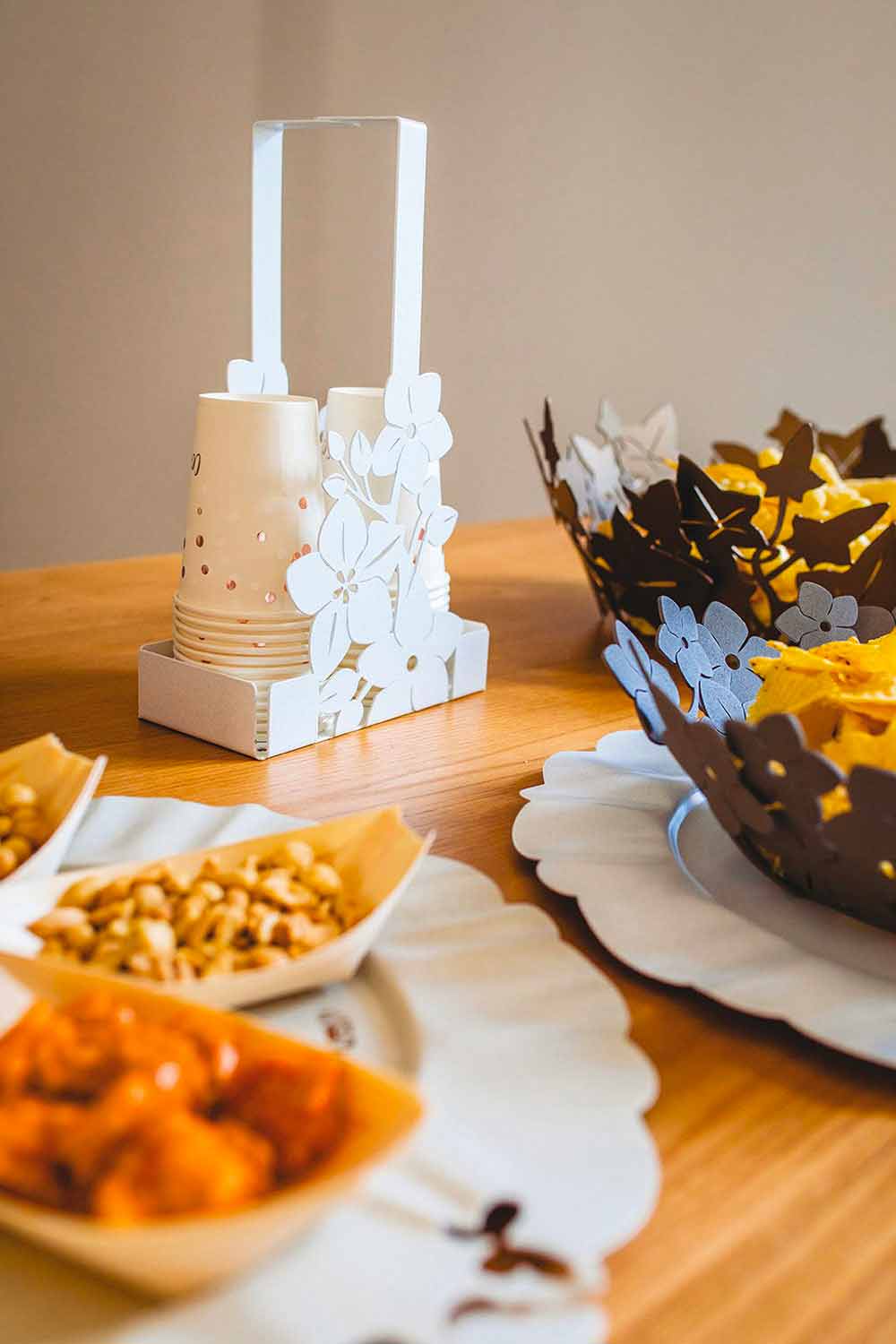 Dubbel bordsskålhållare med blommig stil, handgjord i Italien i vitt järn, marmor, ljusblått eller lera.