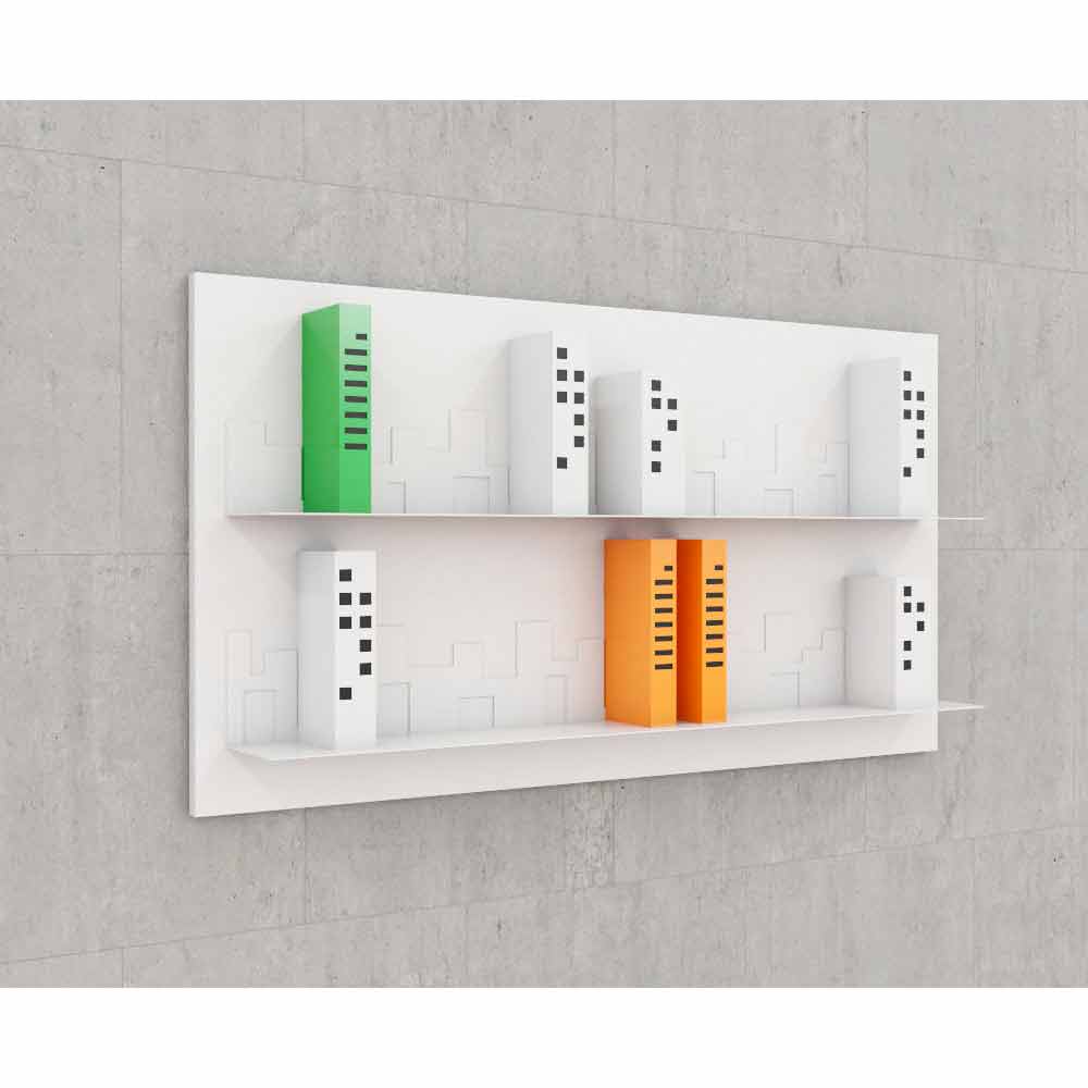 Som en bild på väggen, Skyline återger profilen av en modern storstad: dess skyskrapor delade tre toppar och dubbel som original bokstöd.