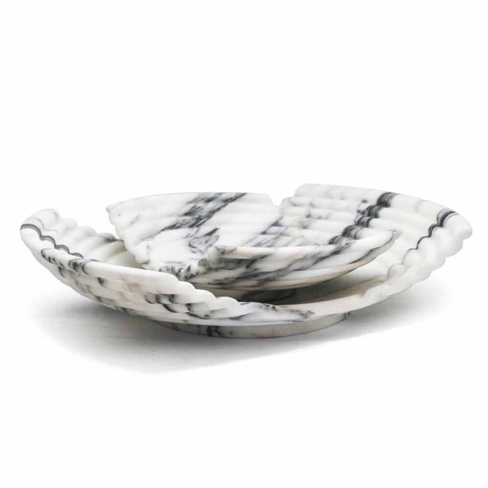 Böjd dekorativ designbricka gjord av högkvalitativ arabesk marmor Tillverkad i Italien.