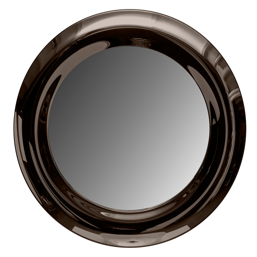 Elegans och karaktär blandas i denna runda badrumsspegel. Den har en böjd glaspanel med en "munk"-effekt, tillverkad genom att forma det 5 mm tjocka glaset för att skapa ett utrymme för den reflekterande spegeln, som skyddas av ett antioxidantharts.
