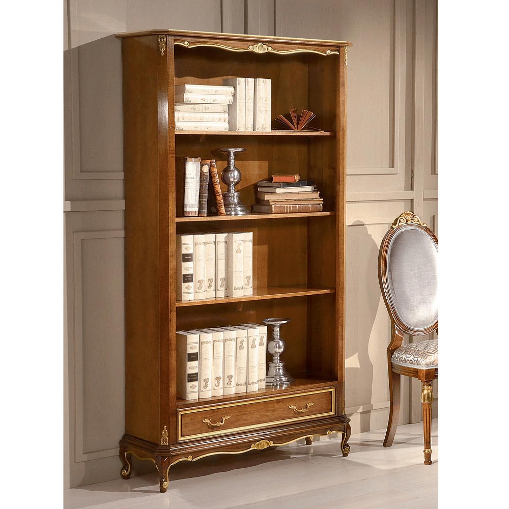 Denna bokhylla i klassisk stil är lämplig för att elegant passa in i alla miljöer, vilket gör den sofistikerad och effektiv. Den är gjord av Bassano valnötsträ med eleganta antika gulddetaljer och har en praktisk låda och 3 hyllplan. Helt tillverkad i Italien av skickliga hantverkare , färdig med visdom och smak för elegans. Produktionen utförs med fina material och utför arbetet för hand med största omsorg och professionalism som utmärker Made in Italy -produkter.