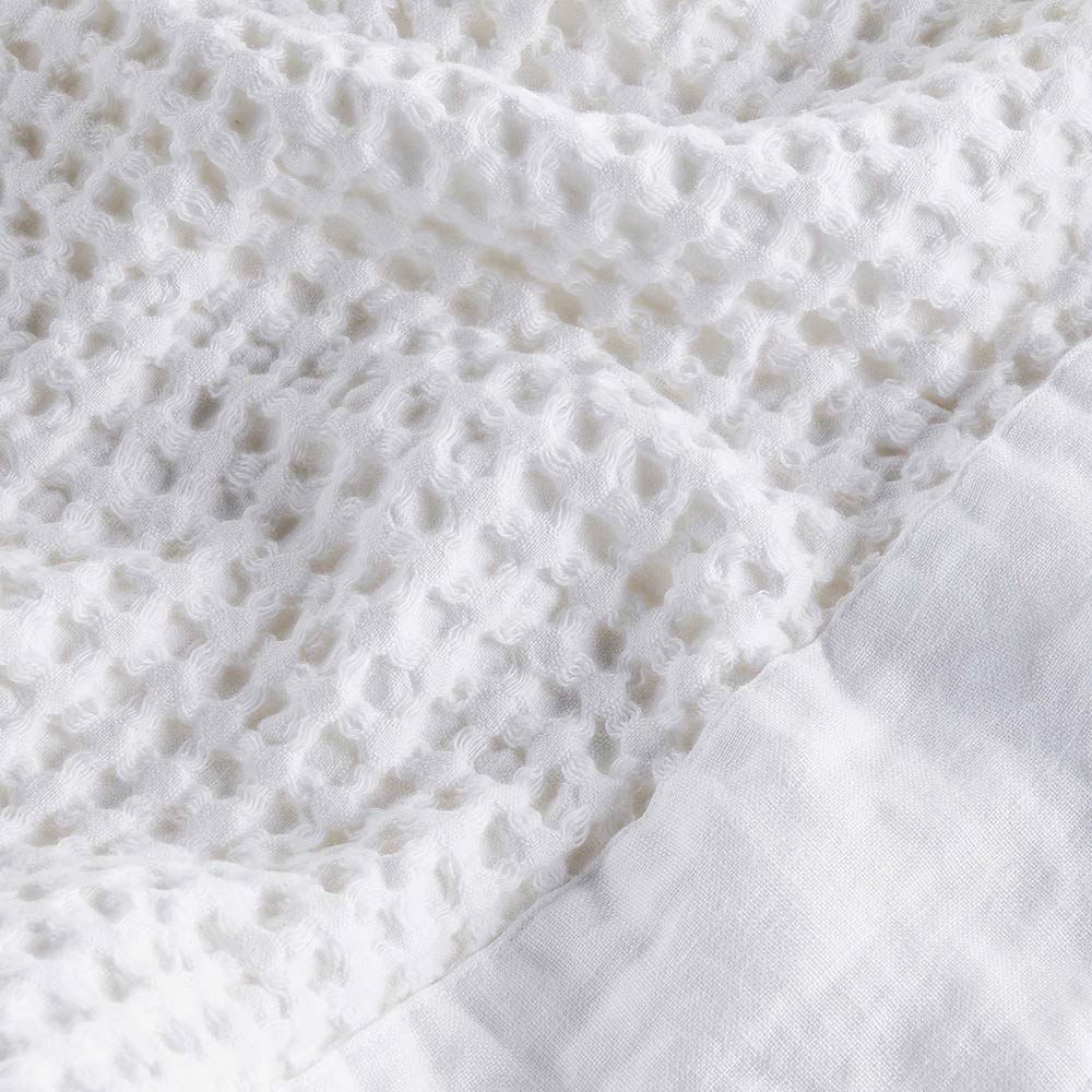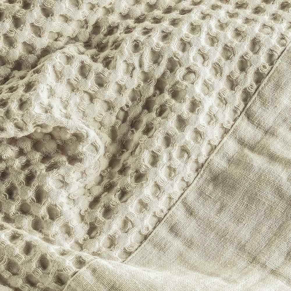 Upplev vardagslyx med vår huvmorgonrock gjord av våffeltyg av bomull , känd för sin lätta känsla och förmåga att snabbt absorbera fukt, vilket ger överlägsen komfort och snabbtorkande. Tyget är smart accentuerat med en linnevolang , som lägger till en touch av hantverksstil och en behagligt kontrasterande struktur.