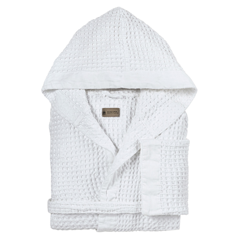 Perfekt för dem som älskar att omge sig med kvalitetsprodukter från Made in Italy , den här badrocken är idealisk för dem som letar efter ett plagg som är både funktionellt och snyggt. Perfekt för kalla morgnar eller för att koppla av efter en lång dag, denna bikaksformade morgonrock med linnevolang är en riktig investering i din dagliga komfort.