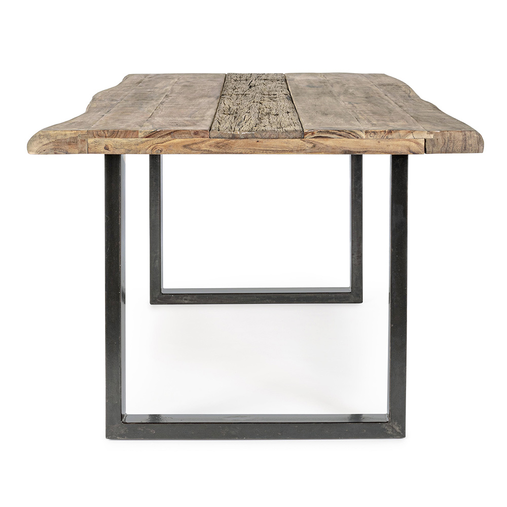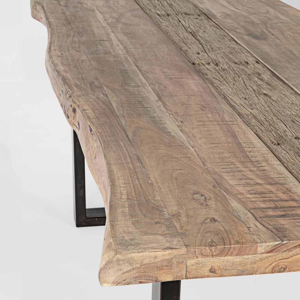 Matbord i akaciaträ med återvunnen insats och stålfot, 8 personer.