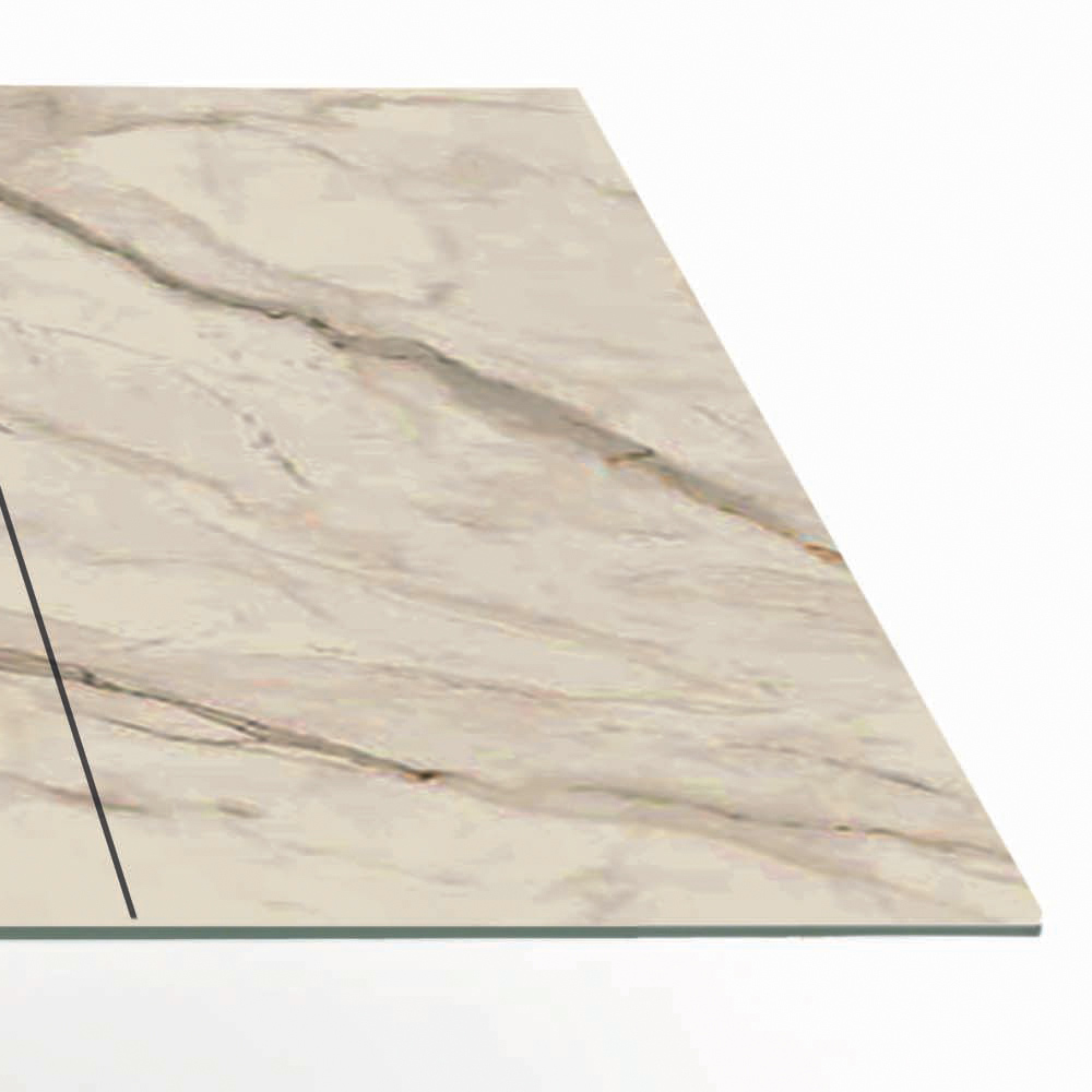 Tillgängliga toppfinishar:- polerad ådrad guld calacatta (tjocklek 10 mm glas + 5 mm keramik)