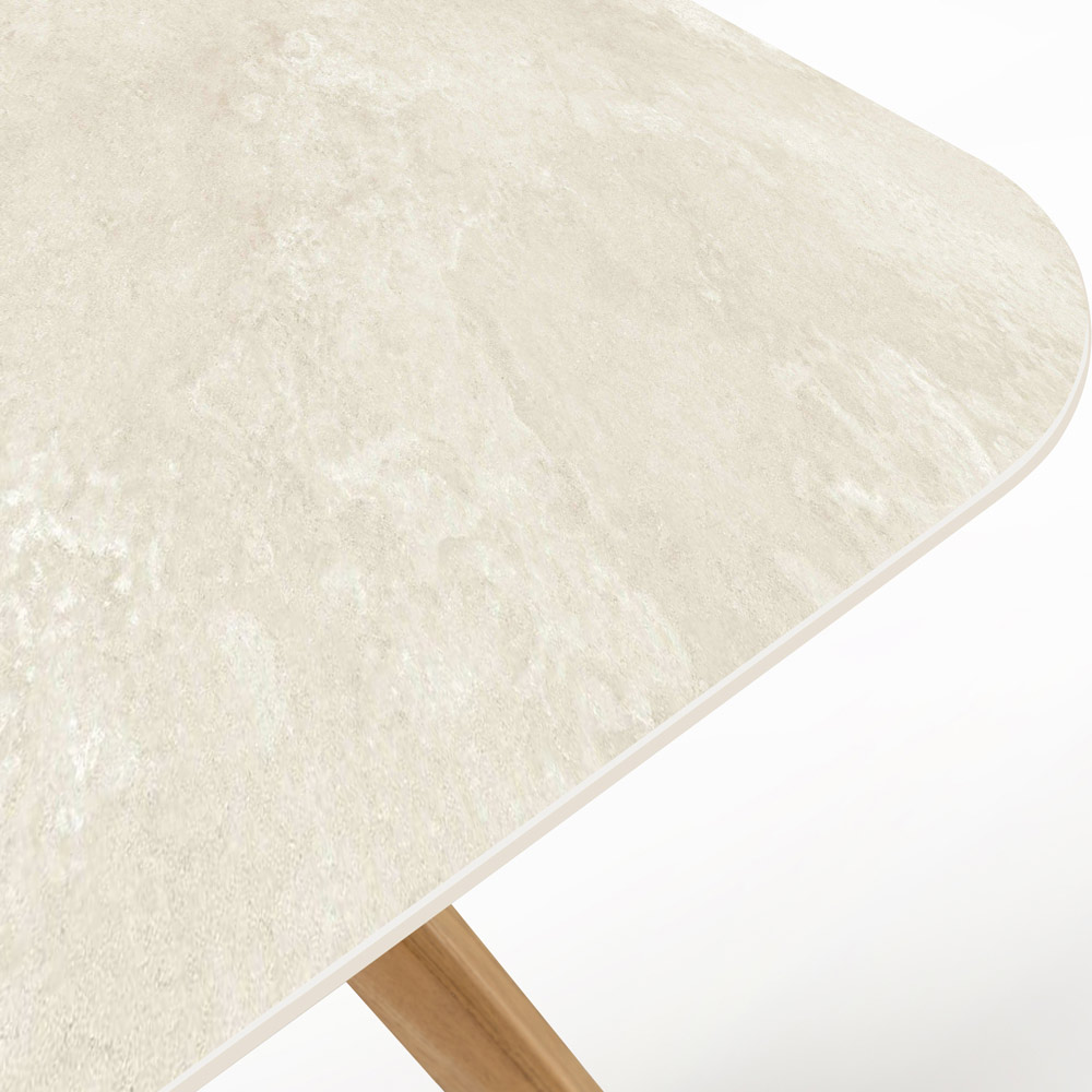 tillverkad i Italien. Detta utomhusbord är ett designerpryl som lyfter alla utomhusutrymmen med sin balans mellan naturlig elegans och modernitet. Bordet har en keramisk skiva inspirerad av Chianca di Ostuni -stenen, känd för sin neutrala färg och textur som påminner om natursten, vilket ger en touch av rustik men ändå modern stil.