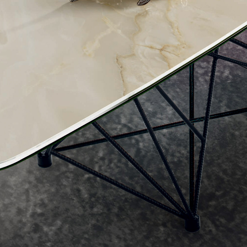 visuella spelet av linjer och former som skapas av stålbasen som ger bordet