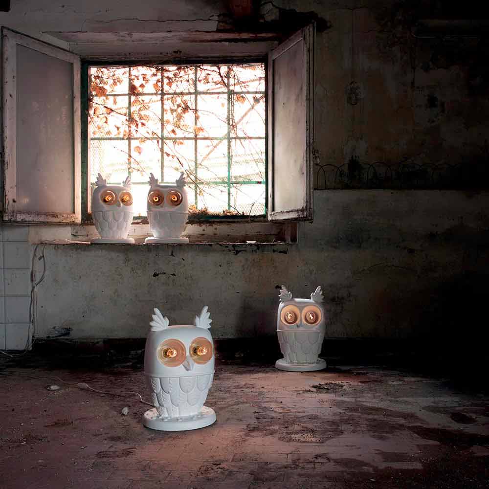 Denna ursprungliga och enastående bordslampa har en modern och fin design i form av en uggla där ögonen som upptas av ljuskällorna ger en lätt och sofistikerad anda.