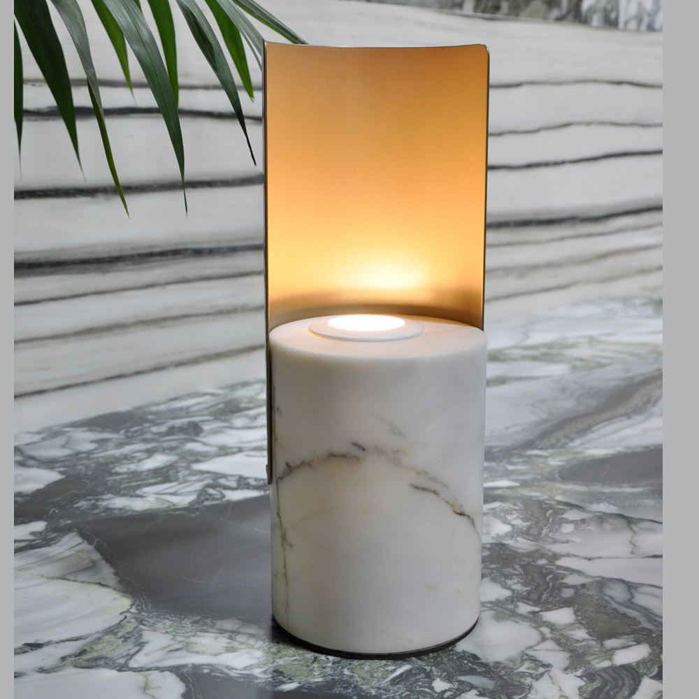 Föreställ dig en ljuskälla som samtidigt är ett konstobjekt: här är denna marmorlampa , en skapelse som kombinerar marmors naturliga elegans med metallens varma luminescens. Den solida och noggrant utformade marmorbasen stöder en metallskärm som sprider ett välkomnande och varmt ljus, designat för att skapa en avkopplande och sofistikerad miljö.