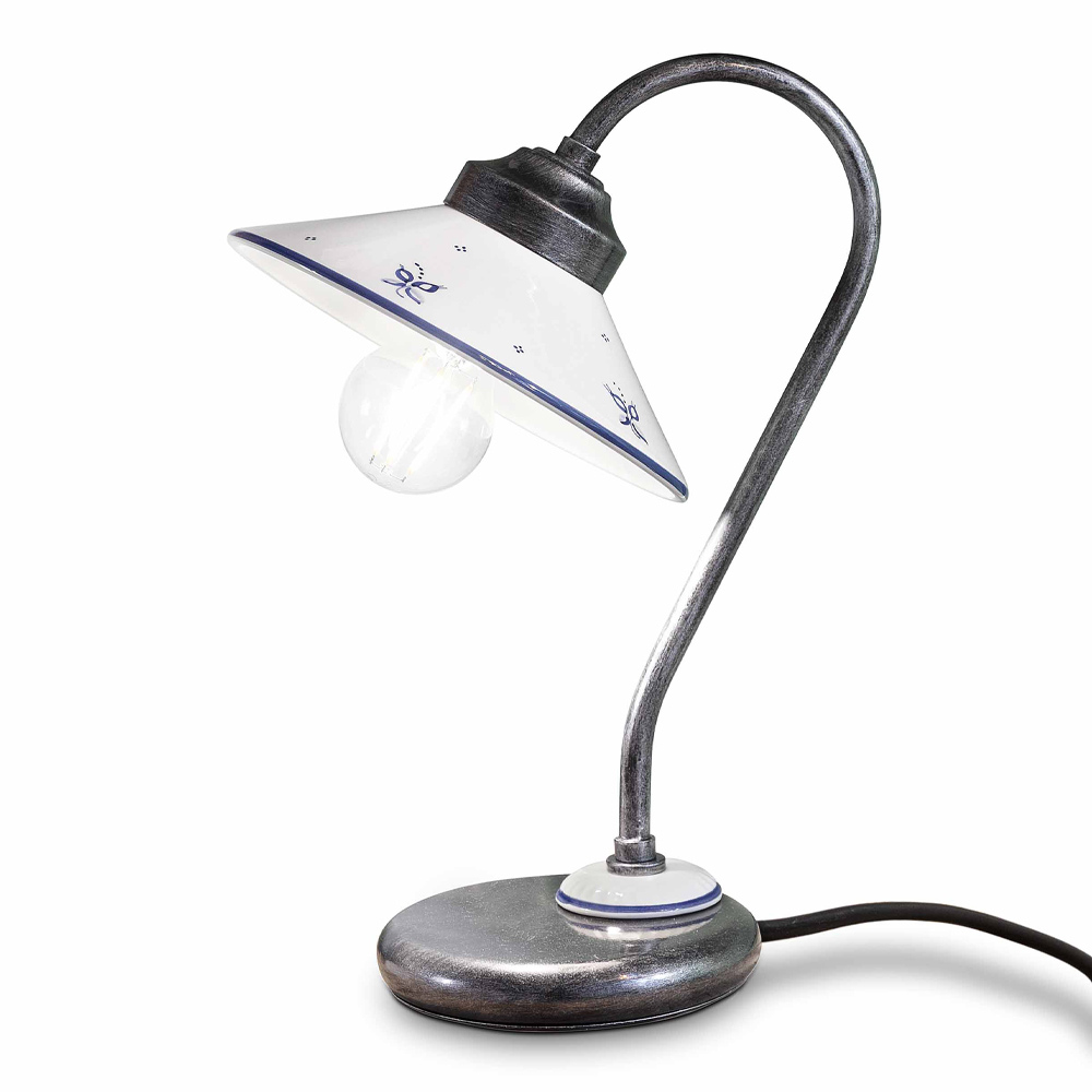Vintage bordslampa i järn och handmålad keramik tillverkad i Italien av Ferroluce.