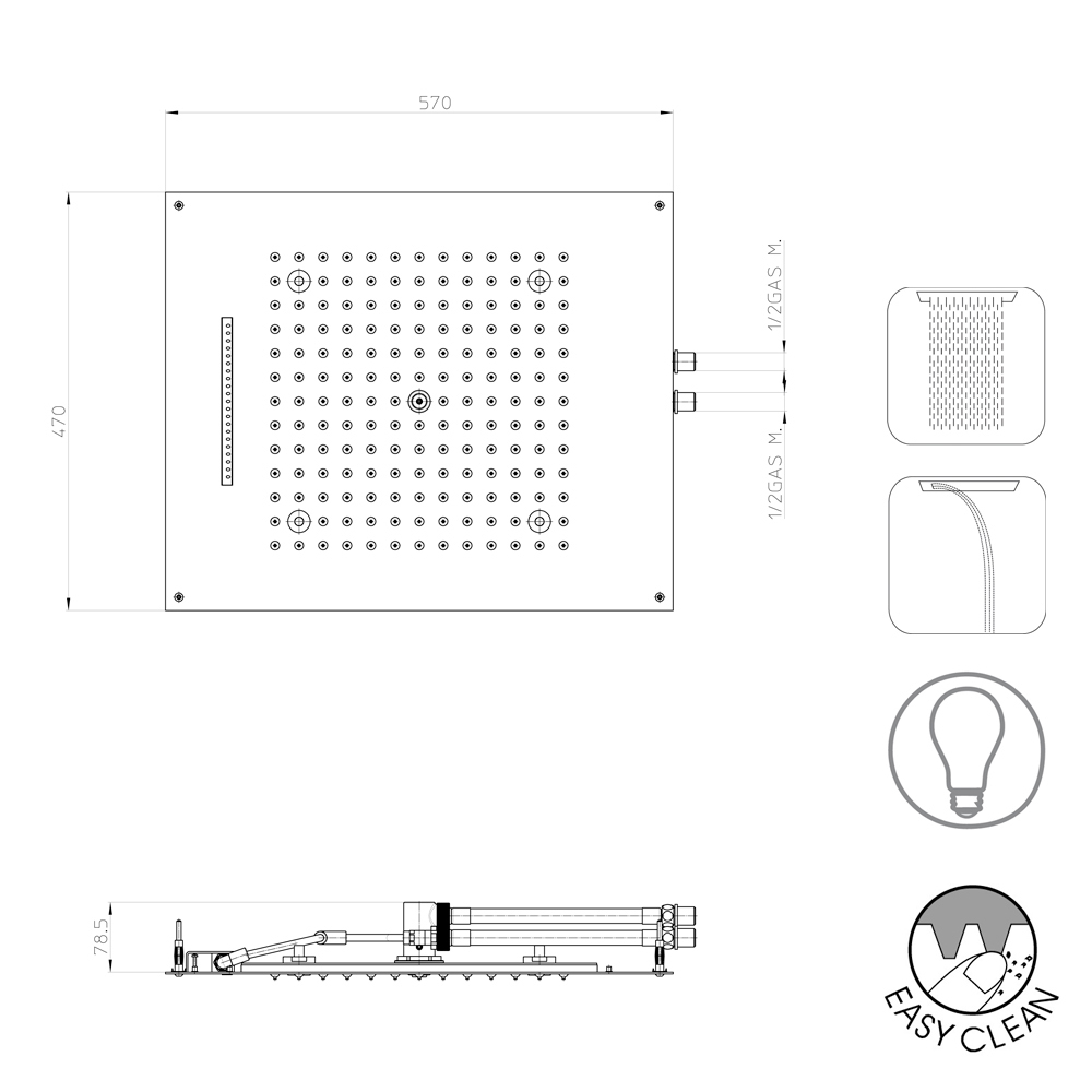 - Dream/2 duschmunstycke med två funktioner (regn och kamvattenfall) med RGB LED-ljus
