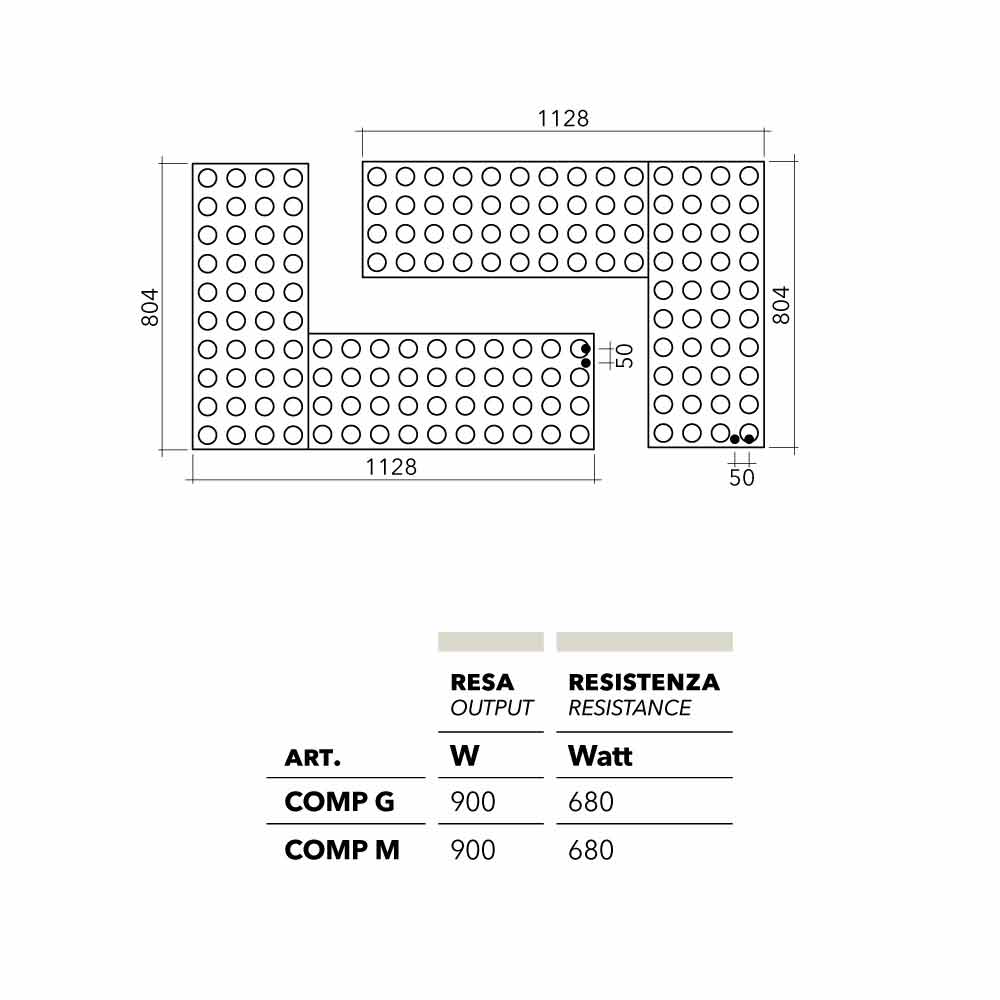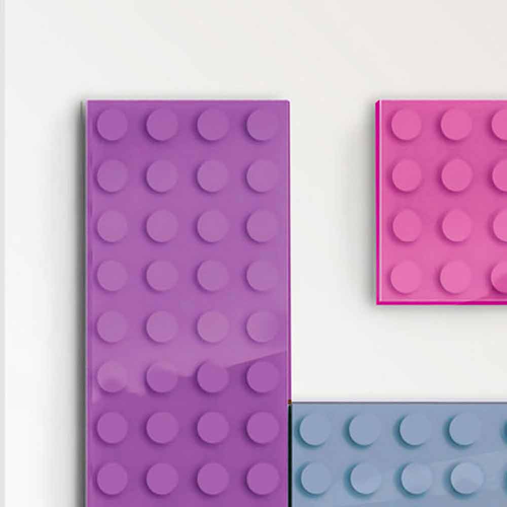 Sammansättning av färgade radiatorer med modern och rolig stil, i hydraulisk version. Ett projekt inspirerat av en affektiv ikon som delas av alla. Flera färgkombinationer för horisontella och vertikala modulära element. Som i ett byggspel kombineras elementen och placerar sig sida vid sida beroende på tillgängligt utrymme och den nödvändiga termiska effekten.