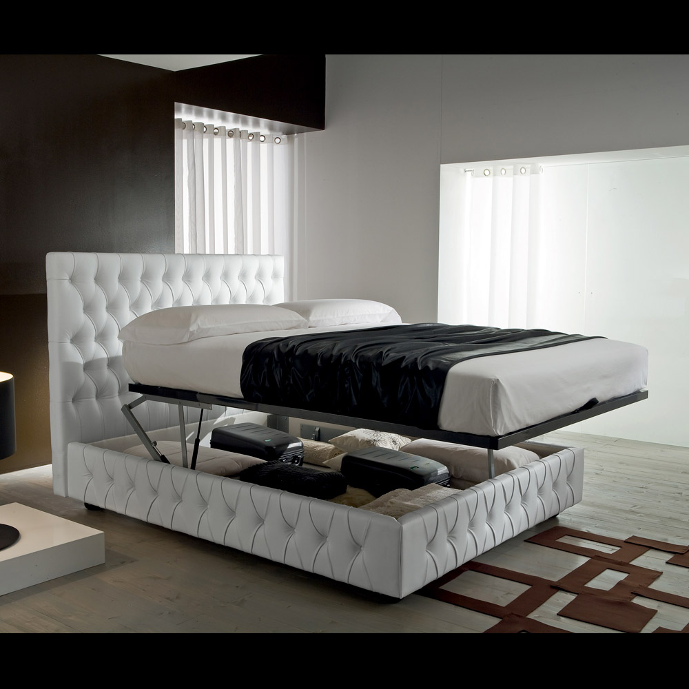 Vit läderdubbelsäng med valfri behållare Tillverkad i Italien