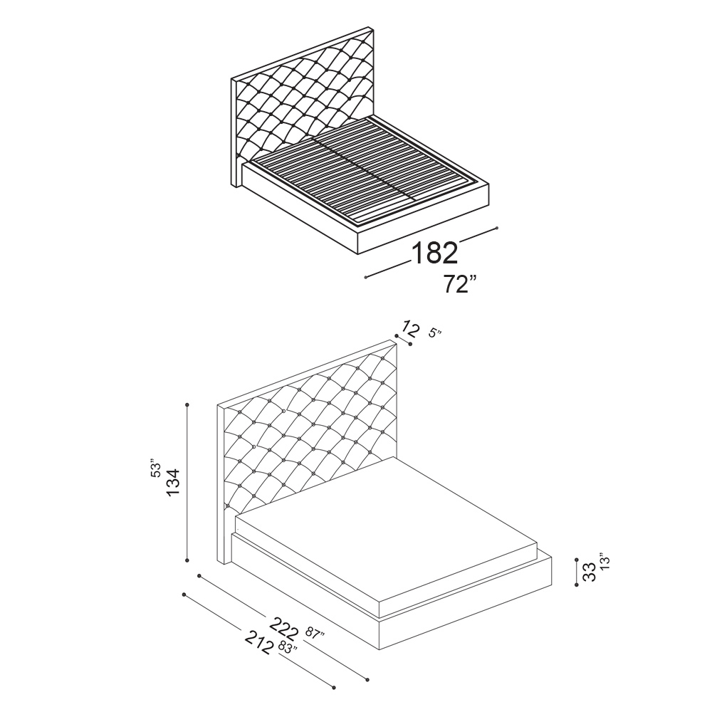 - längd: 182 cm x djup: 222 cm x höjd: 134 cm - lämplig för en madrass på 160x200 cm