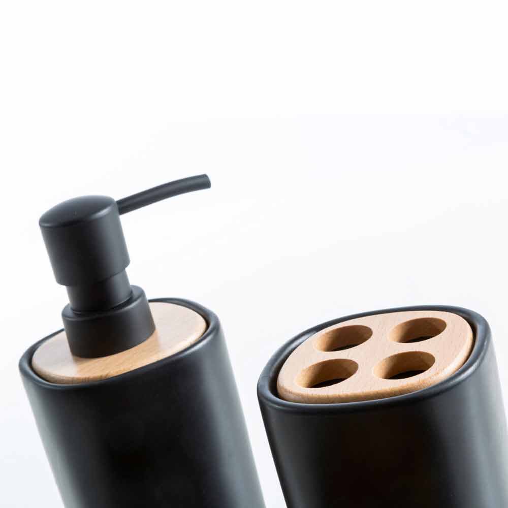 Badrumsset med moderna tillbehör i Carsoli keramik och trä