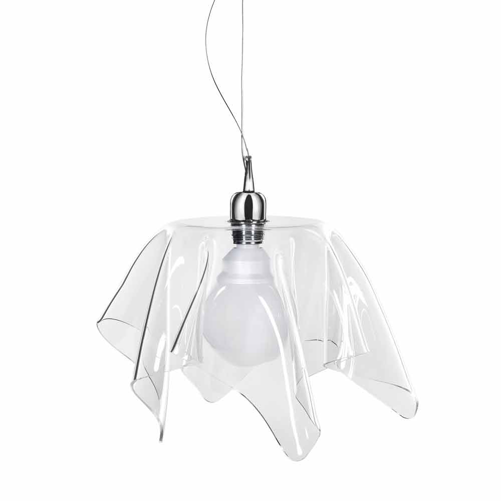 Varje ljuskrona Daphne är ett konstverk: ett ark gjort av 100% virgin polymer eleganta transparent färg är draperad för hand vid höga temperaturer, upp för att skapa en unik och unrepeatable handgjorda lampskärm. Ljusstyrkan och ljusstyrkan förblir konstant och oförändrade över tiden. Den plexiglas PMMA från jungfrulig polymer som användes är icke-toxisk, hypoallergen, luktfri och antibakteriell. Återvinningsbar 100%. Matningsspänning: 220V / 240 V; Skyddsklass: IP20; styrmetod: hand switch; glödlampa ingår ej; Attack: E27 MAX 42W. I enlighet med UNI EN 71-3: 200. Utformade, konstruerade och tillverkade i Italien, med italienska material.