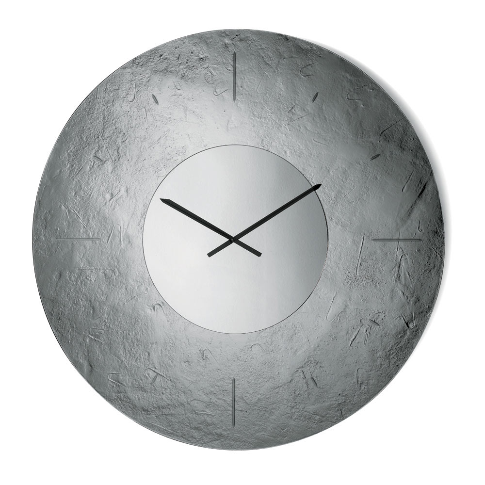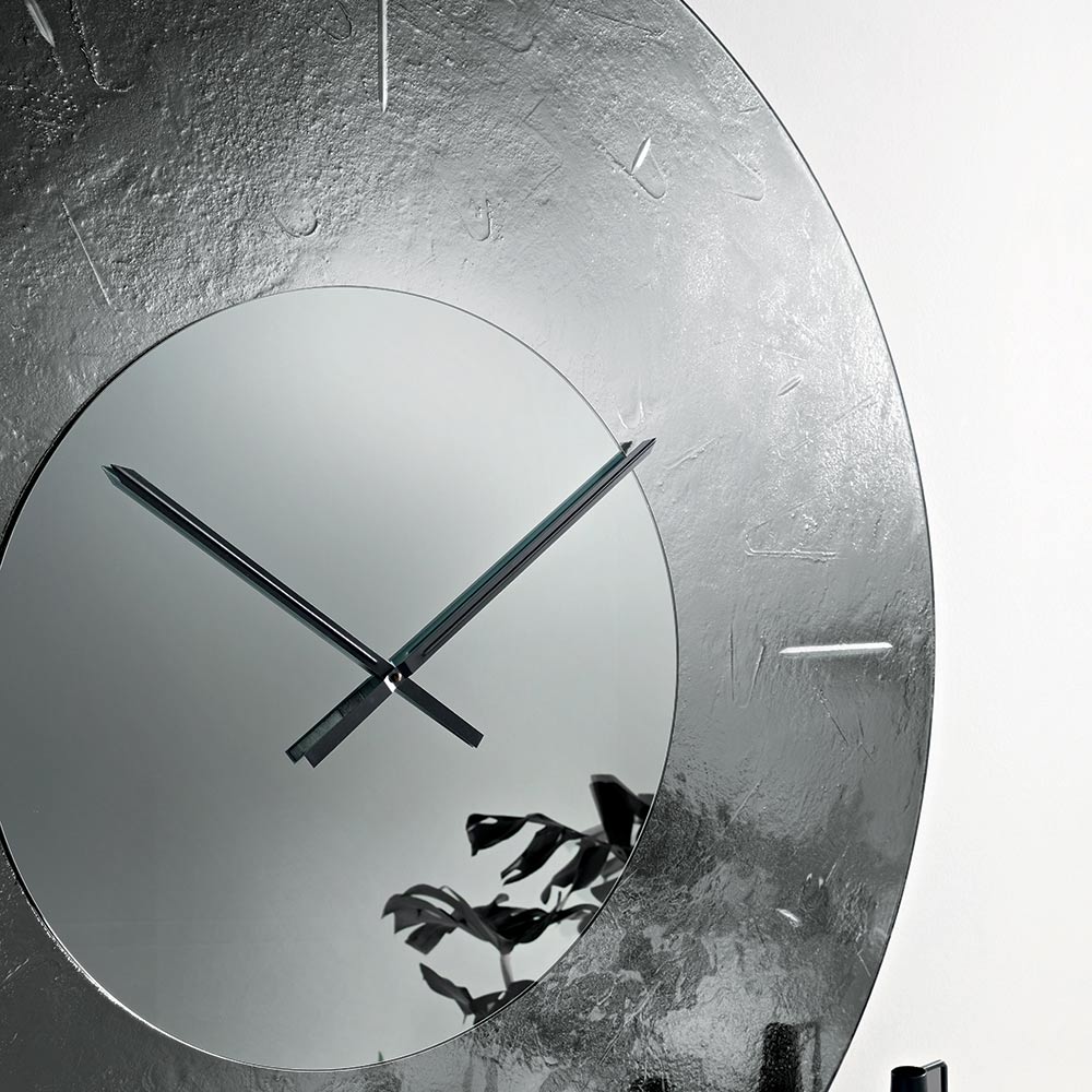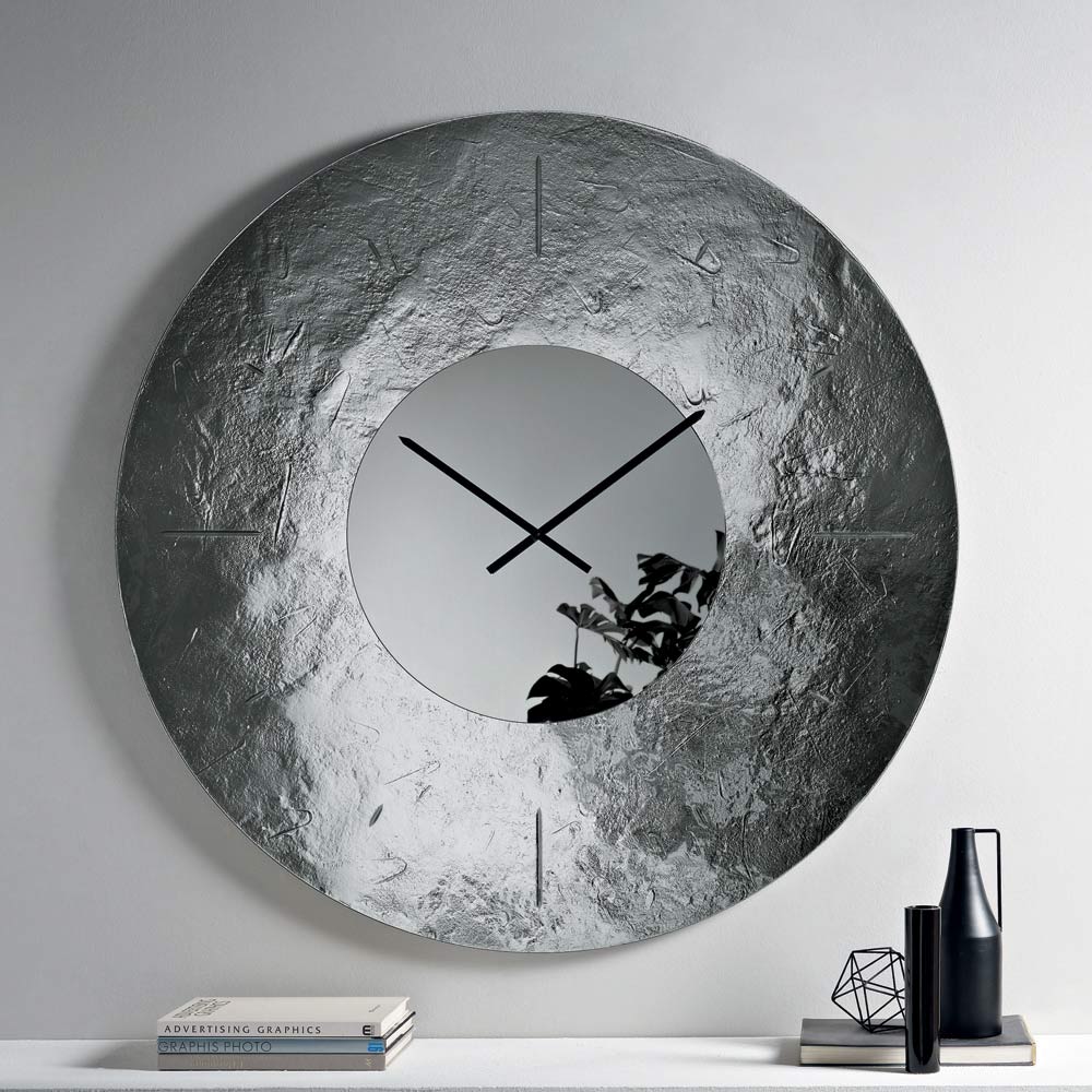 Klockan har en visuellt slående rund form , utsmyckad med en baksida försilvrad hamrad, smält glasram som skapar ett raffinerat samspel mellan reflektioner och djup. I mitten finns en ton-i-ton speglad insats med visarna, vilket ger balans och lyster åt kompositionen.