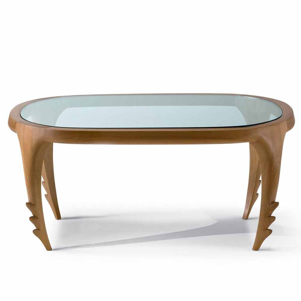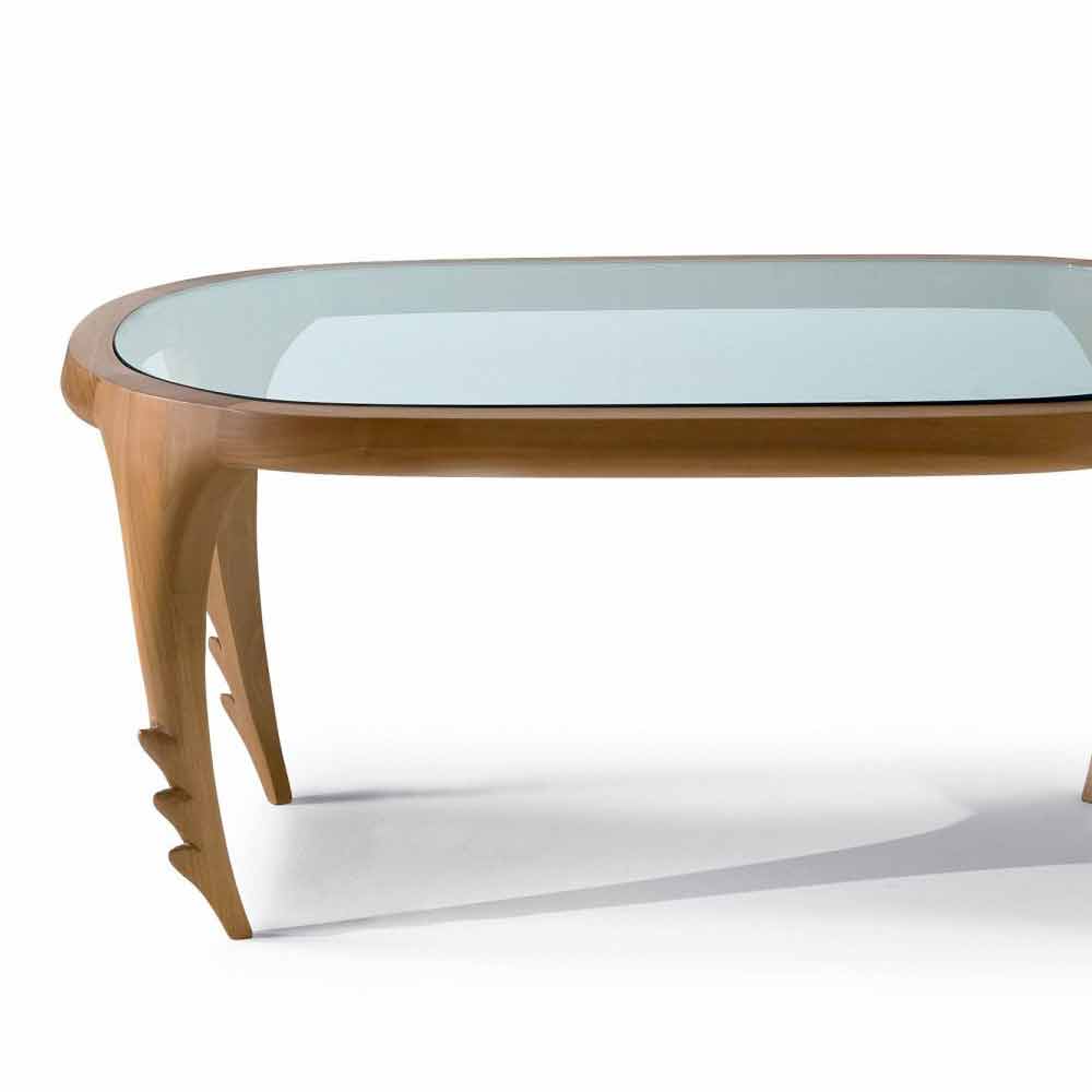 Cecilia är ett soffbord som kännetecknas av en unik och innovativ design. Olika material såsom trä och glas samexistera, återskapa en intressant kontrast.