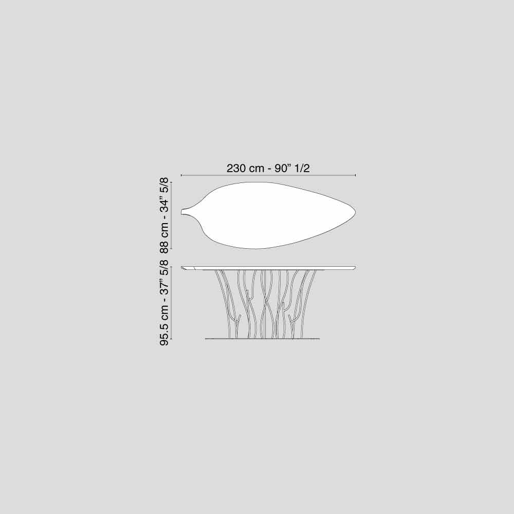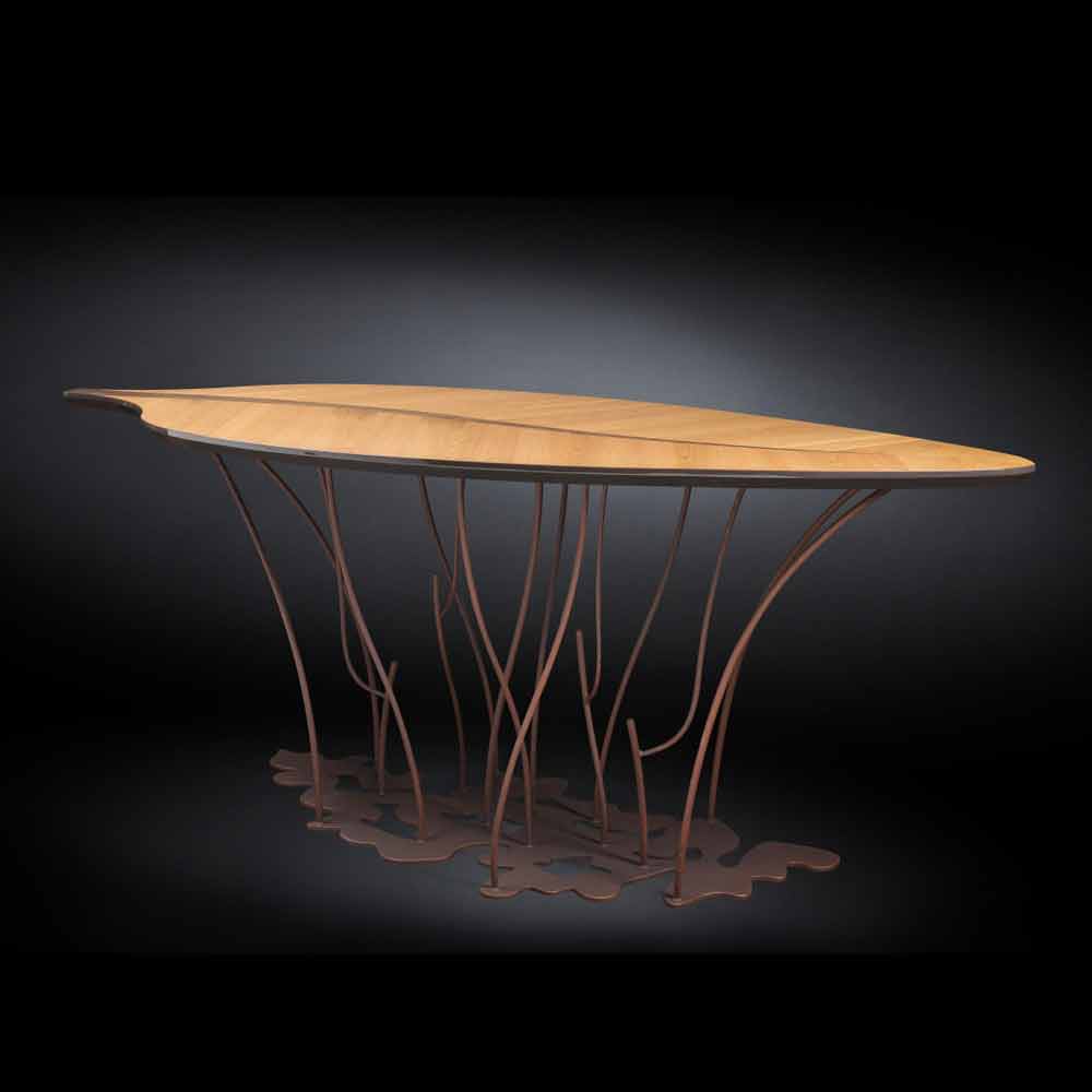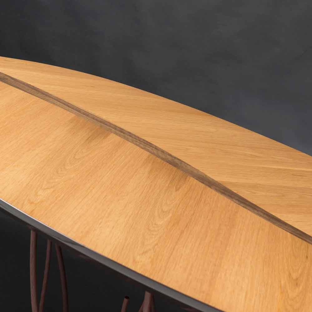 Konsol med en unik design och oefterhärmliga, är dess väsentlig egenskap inkapslat i dess platta, formad, bladformade, tillverkad i MDF och hög densitet, fanerade i ek i en "fiskbens", med centrumskär i valnöt och fullt färdig polyester borstad förglasad. Dess självbärande basen är en riktig "skulptur", som kännetecknas av "grenar" Corten effekt målad metall. Phoenix ger det unika i sin design; i det ek, valnöt och stålsmältan i en het och oupplösligt omfamning.