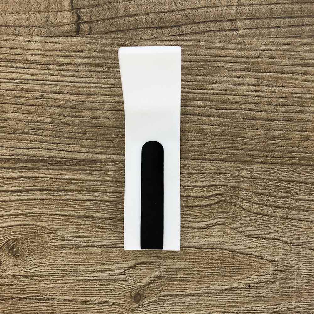 vägghängare är gjorda av 6 mm tjock vit corian solid yta med en vit eller svart bandinsats.