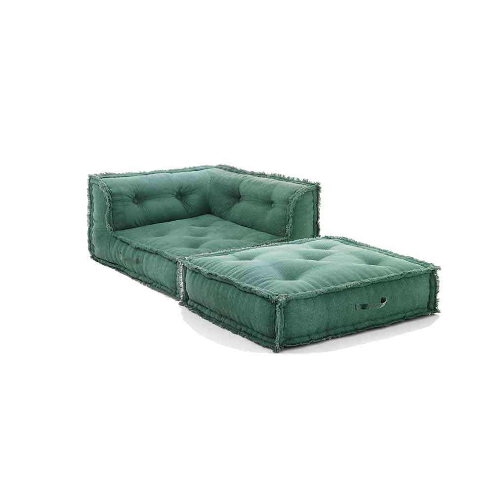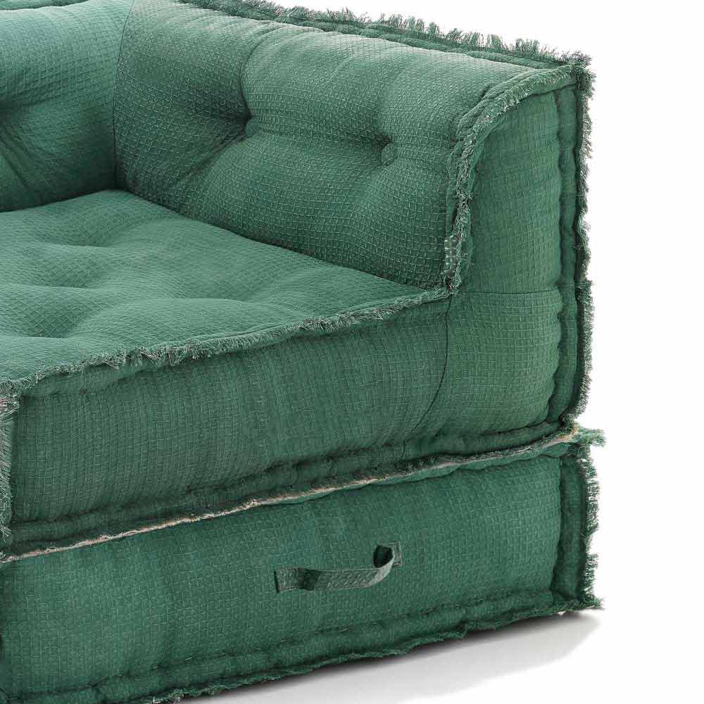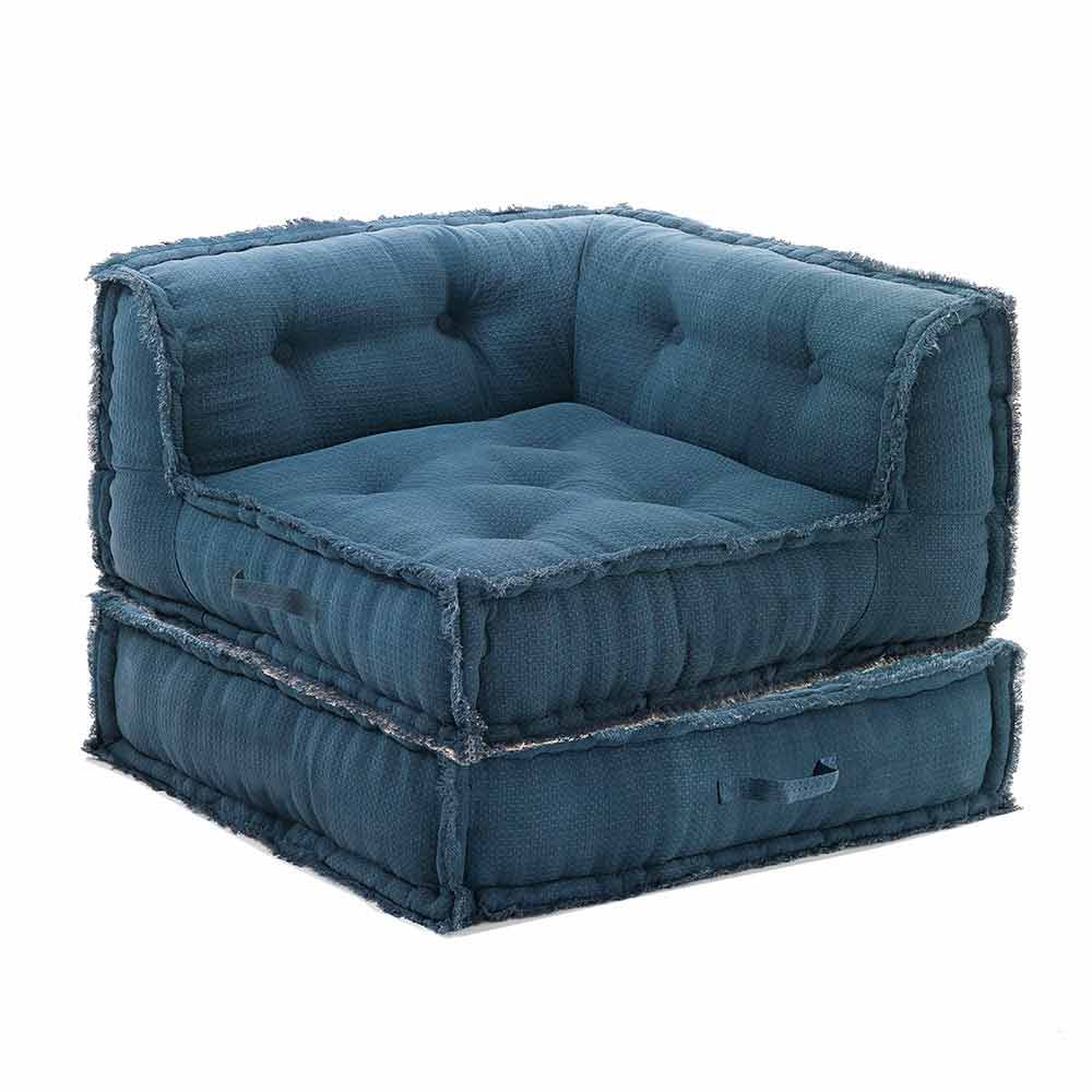 Etnisk designhörnstol, chaiselongfåtölj, tillverkad i grå, grön eller blå bomull.