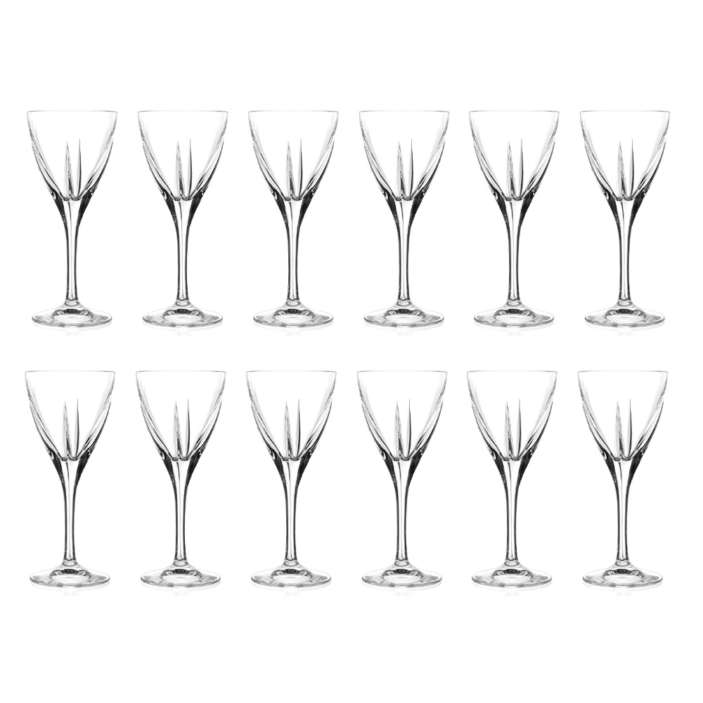 Uppsättning vinglas i transparent eller färgat ekokristall 12 delar 2 storlekar tillverkade i Italien.