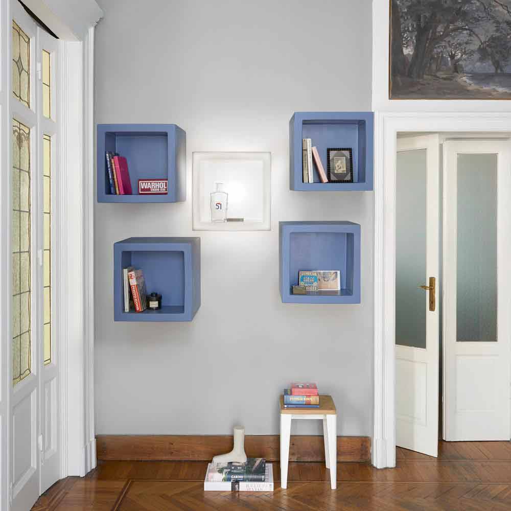Slide Open Cube färgad kubhylla modern design tillverkad i Italien