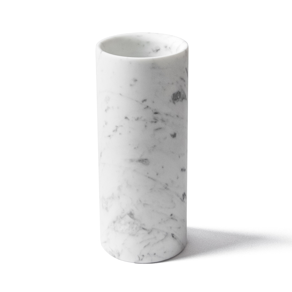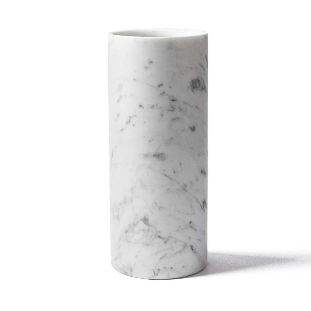 Handgjord vas i vit Carrara-marmor cylindrisk design tillverkad i Italien.