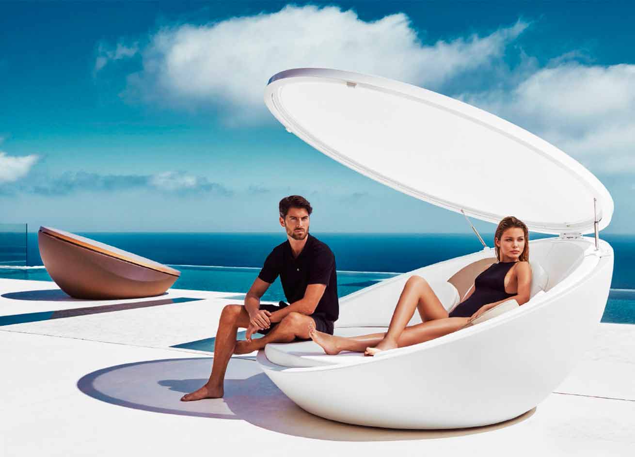 Dagsängen förkroppsligar styva och resistenta strukturer för vila och stöd som erbjuder total komfort. Materialet som används för strukturen är polyeten, motståndskraftig mot klimatförändringar och klimatförändringar.