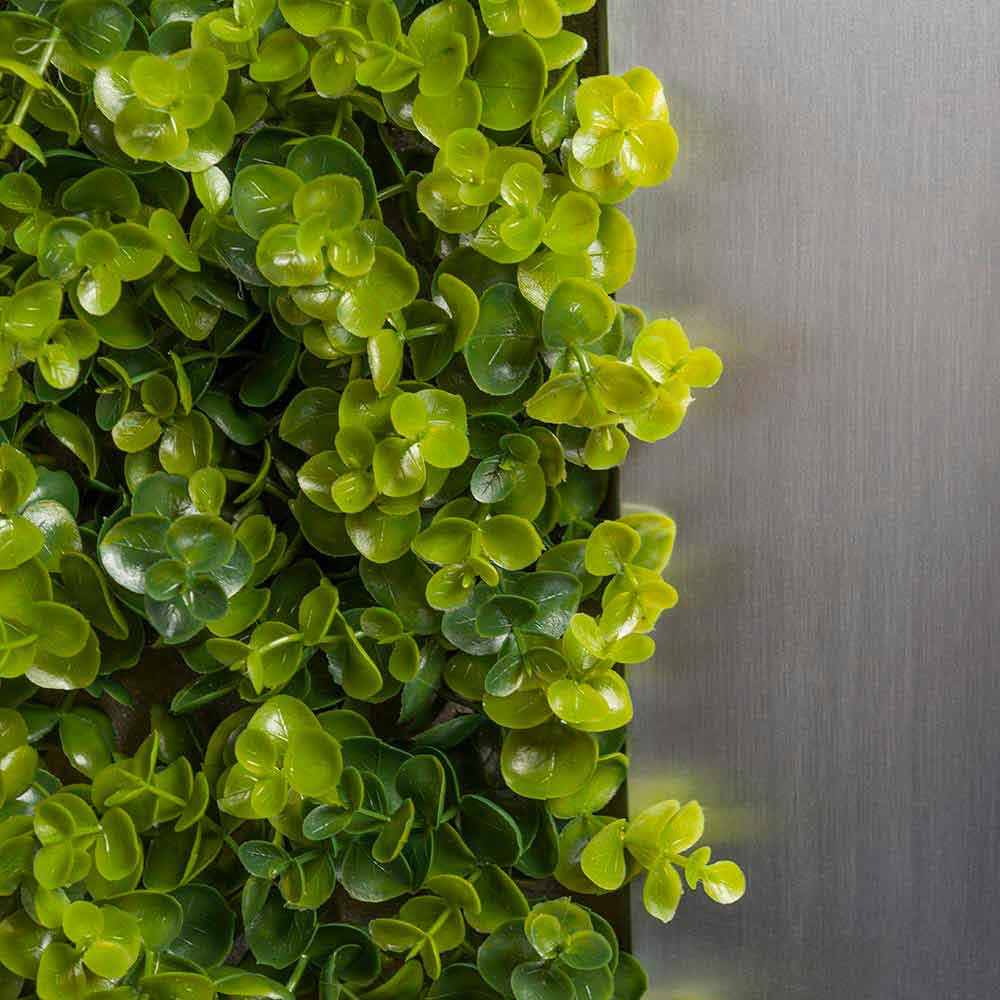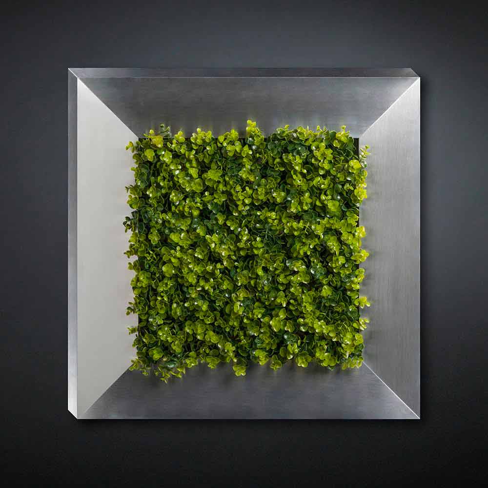 Dekorativ väggpanel tillverkad i Italien med förkromad metallstruktur och skär i konstgjorda eukalyptusblad . En idé om möbler som kommer från det ovanliga mötet mellan naturens skönhet och en modern design som betonar charmen hos båda världarna på ett exklusivt sätt. Det som är född är ett dekorativt komplement med en sofistikerad själ som vet hur man möblerar och fyller alla inhemska eller kontraktsmiljöer med en modern stil genom sin extrema mångsidighet och raffinerade minimalism . Den här panelen är perfekt för att ge en känsla av tredimensionalitet till ditt väggar och spelar en grundläggande roll genom att fånga all uppmärksamhet tack vare sin ursprungliga och kreativa själ som för med sig sinnet i ett grönt landskap som ger lugn och ro .