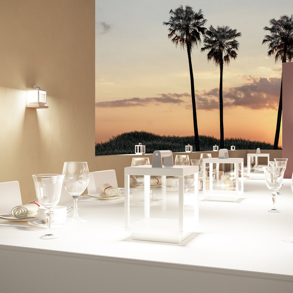 Tack vare sin utformning är den perfekt både som stödlampa i kombination med flera element, och som upphängningslampa genom att använda kroken placerad i den övre delen. Resultatet är ett komplement av hög kvalitet som kan lyfta fram utomhusområden inom hem- eller entreprenadmiljö.