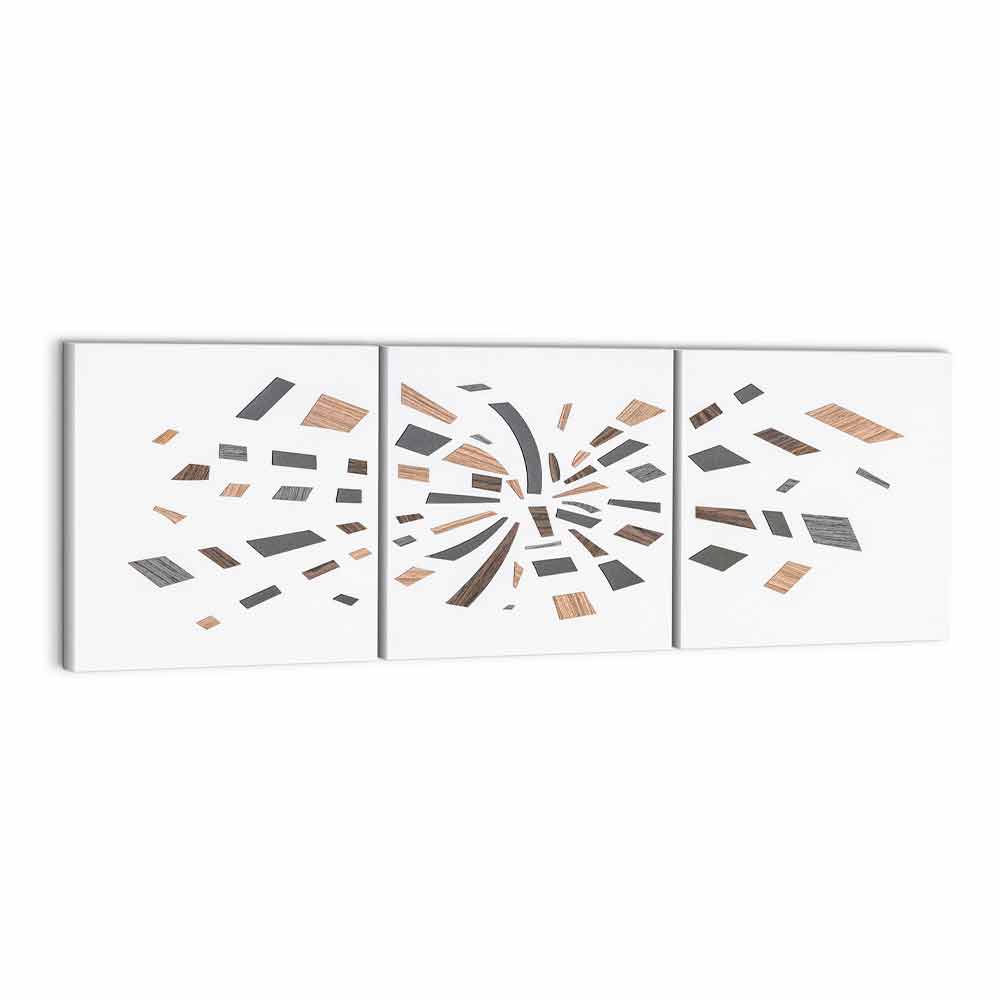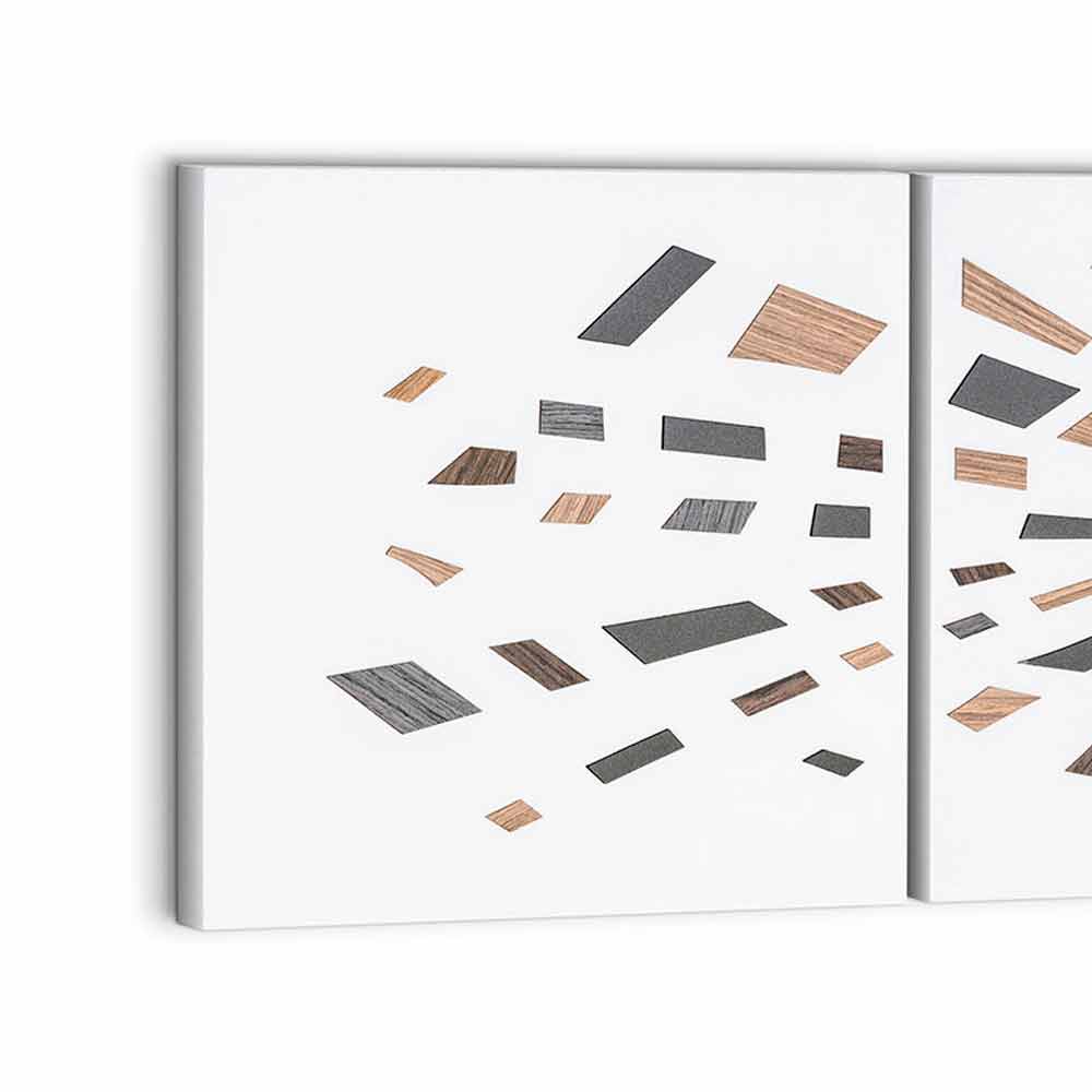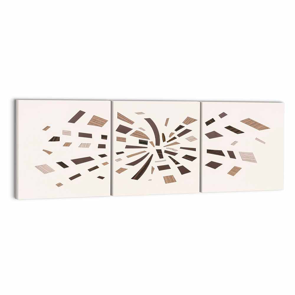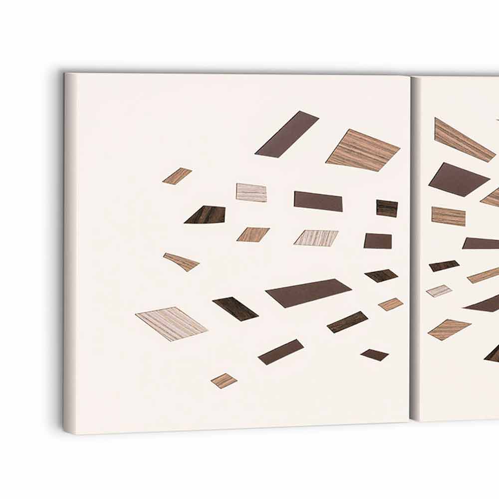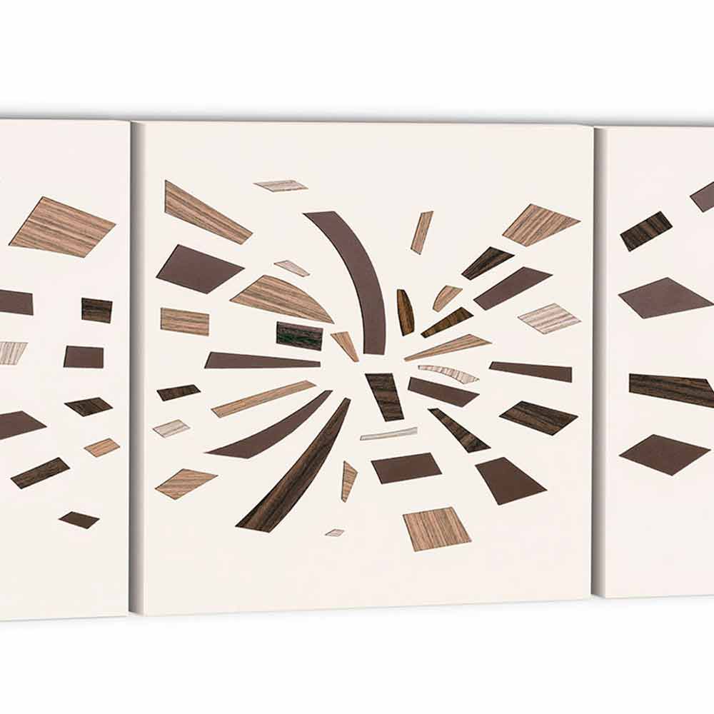 laminat och ton-på-ton träapplikationer som kännetecknas av olika essenser och nyanser av färg. Tre paneler sammanfogade för att ge liv åt ett resultat med en underbart balanserad design samt den speciella konsistensen och färgerna som gör det till ett verkligt konstverk, ett perfekt komplement för miljöer med en stark