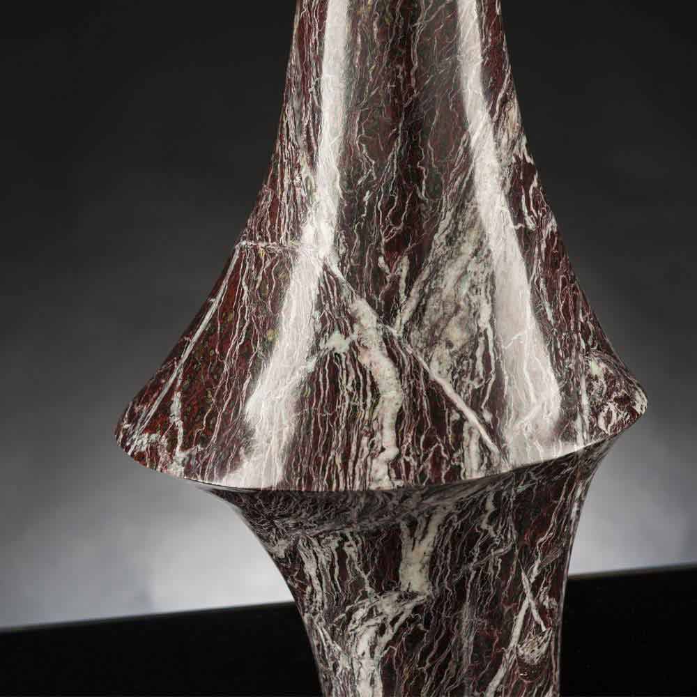 Elegant vas för interiör i Antico d'Italia röd marmor, ett prestigefyllt mörklila material med vener i nyanser av grönt och vitt tillverkat genom en 100% Made in Italy-produktion . Produktionen sker genom bearbetning av naturstenar med 5-axliga strömavtagare som gör det möjligt att få mer komplexa former än enkla rotationsvolymer. Denna eleganta möbel kommer från sambandet mellan studiet av naturfenomen och interaktionen mellan de material som används med mänsklig teknik för att ge liv till en unik och avantgardistisk möbelstil. Resultatet är ett exklusivt dekorativt element som kan berika alla miljöer med en modern och raffinerad estetik med personlighet. En idealisk stil för de mest varierade miljöerna, från heminredning till hotell, restauranger, kontraktsområden, spa men också som en miljö för evenemang och bröllop.