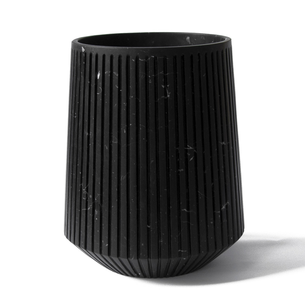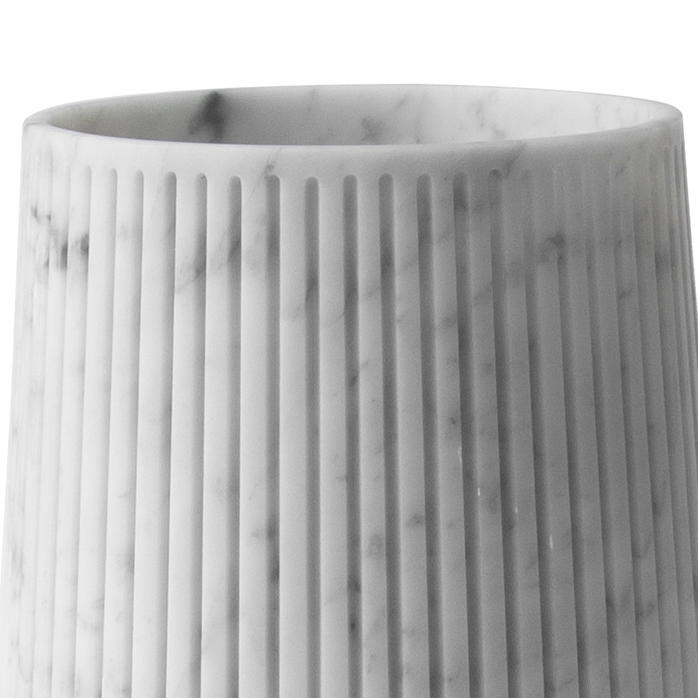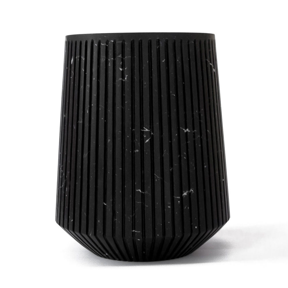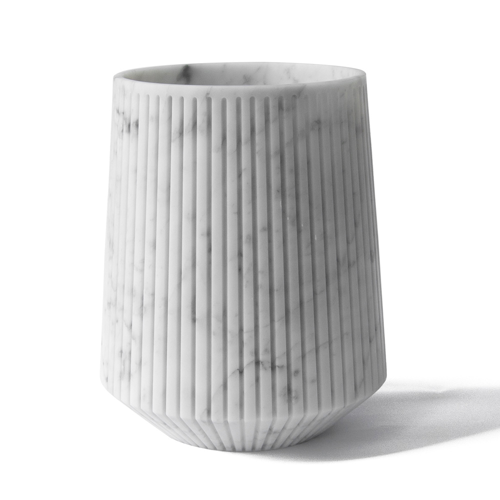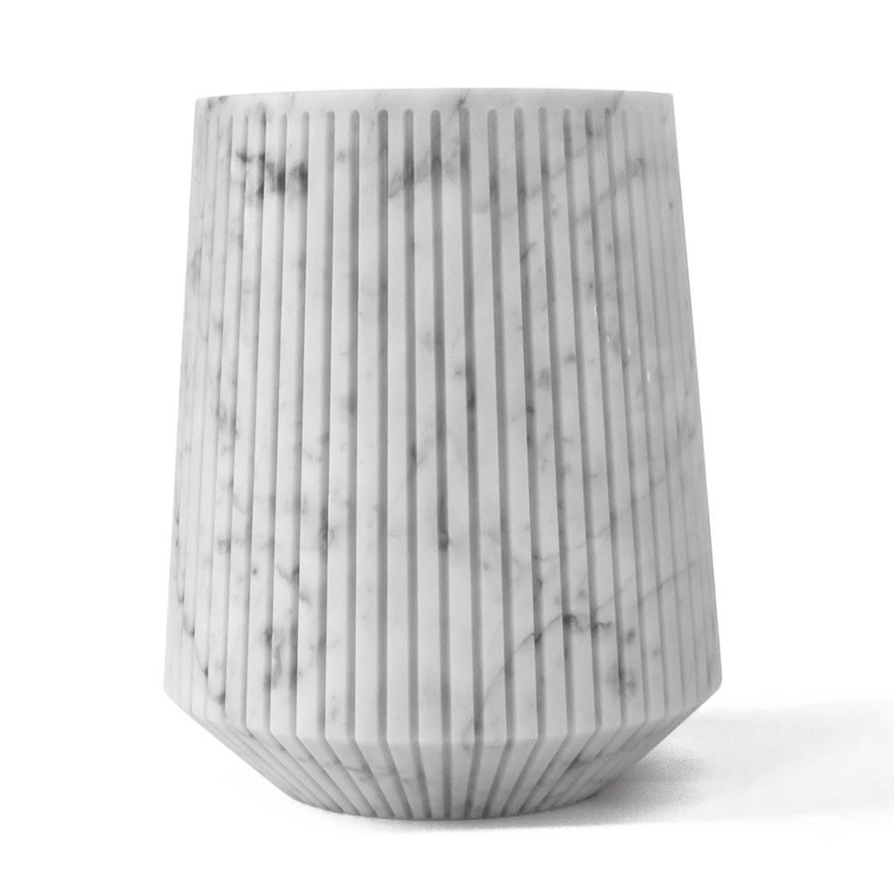 Stor handgjord vas i vit eller svart marmor med ränder av tillverkad i Italien design.