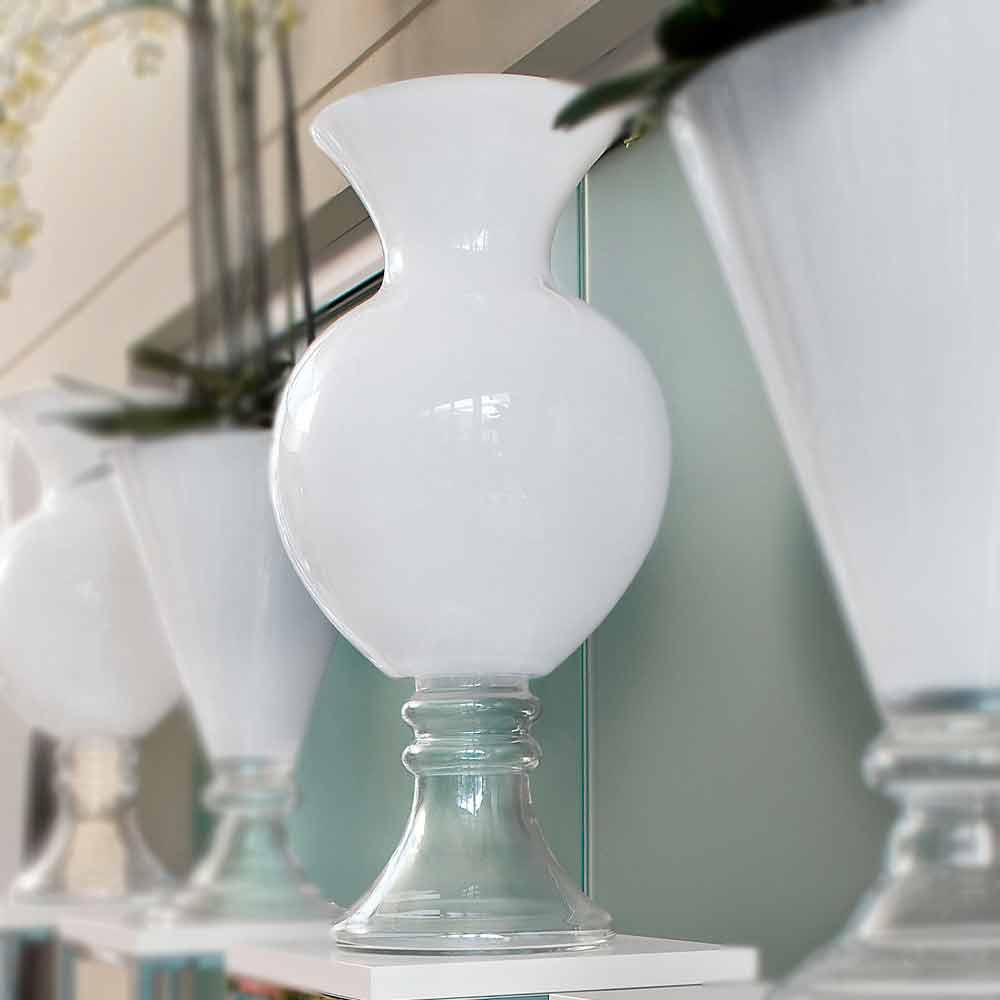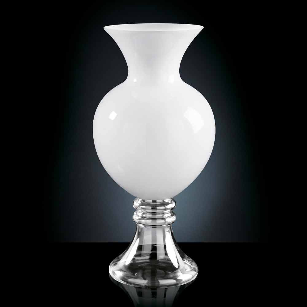 Elegant vas för inredning i vitt och transparent glas Tillverkad i Italien.