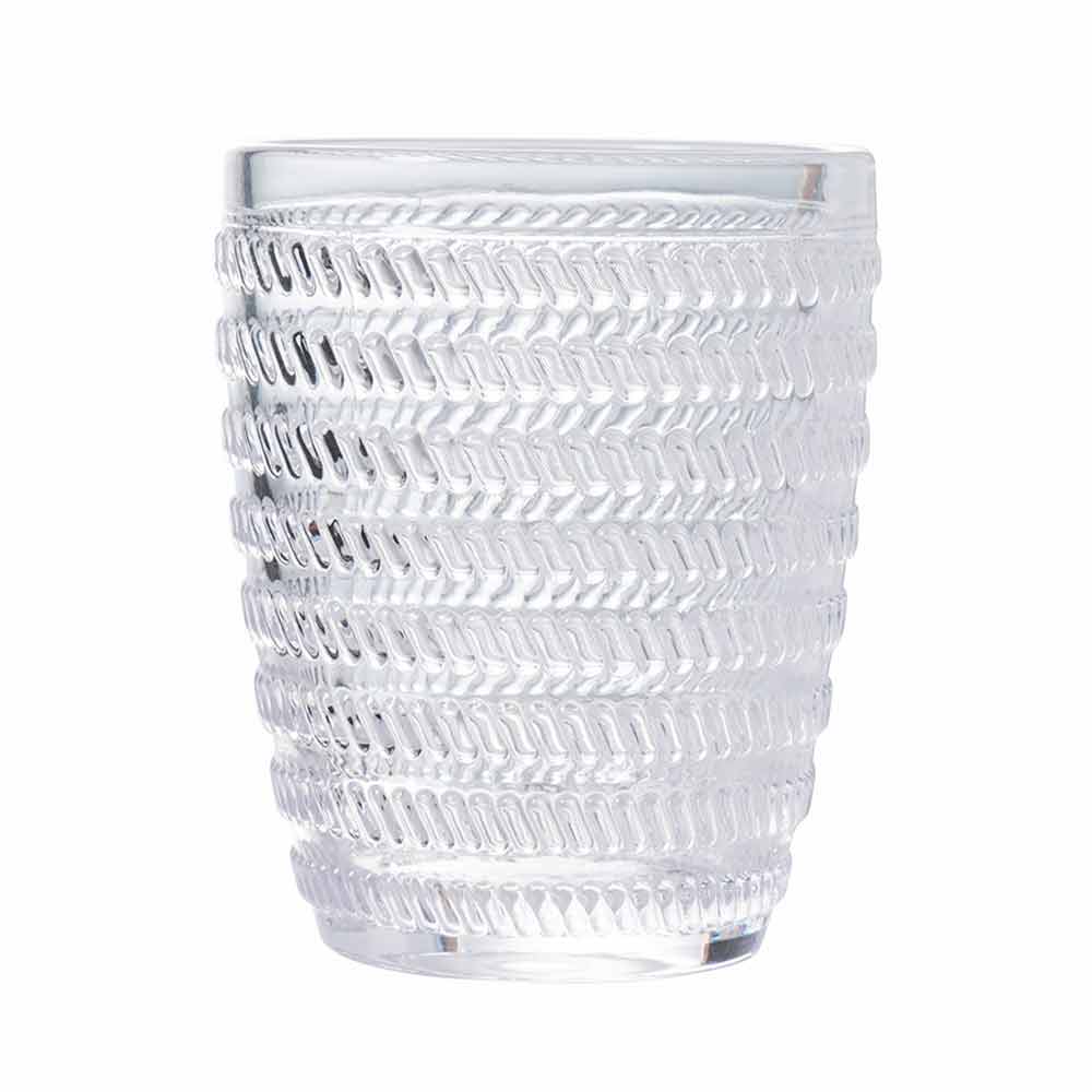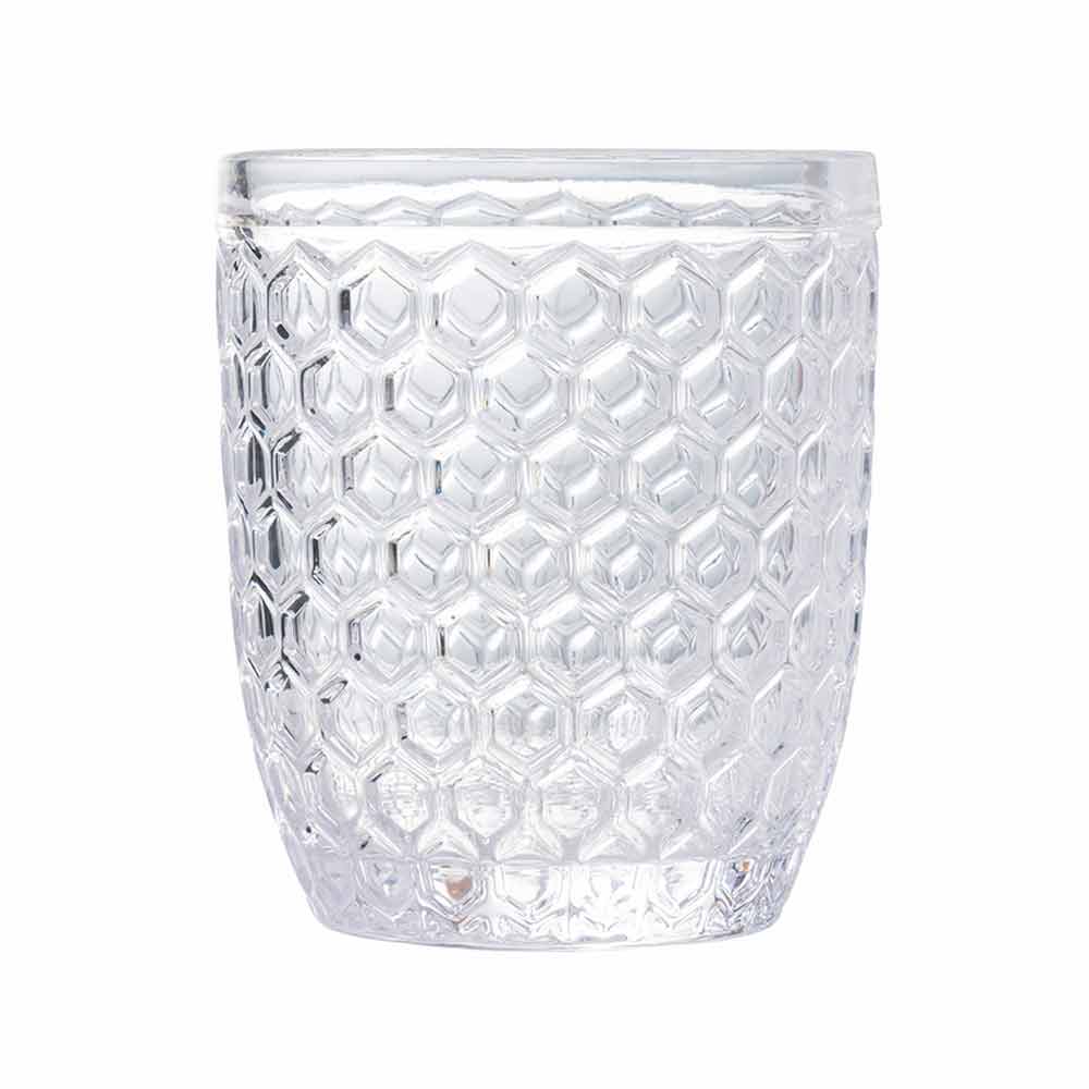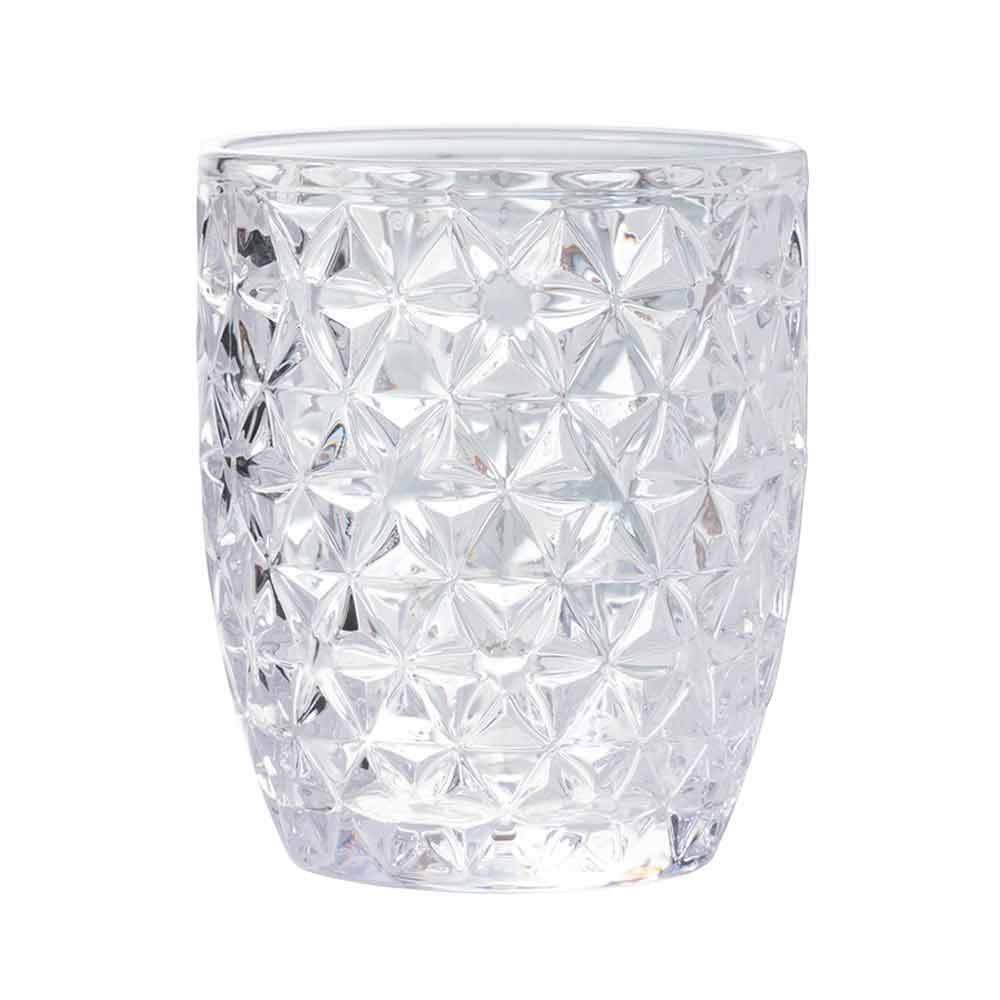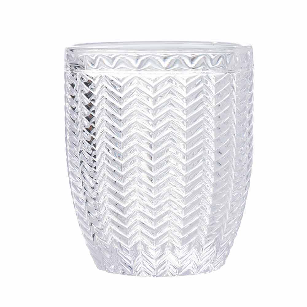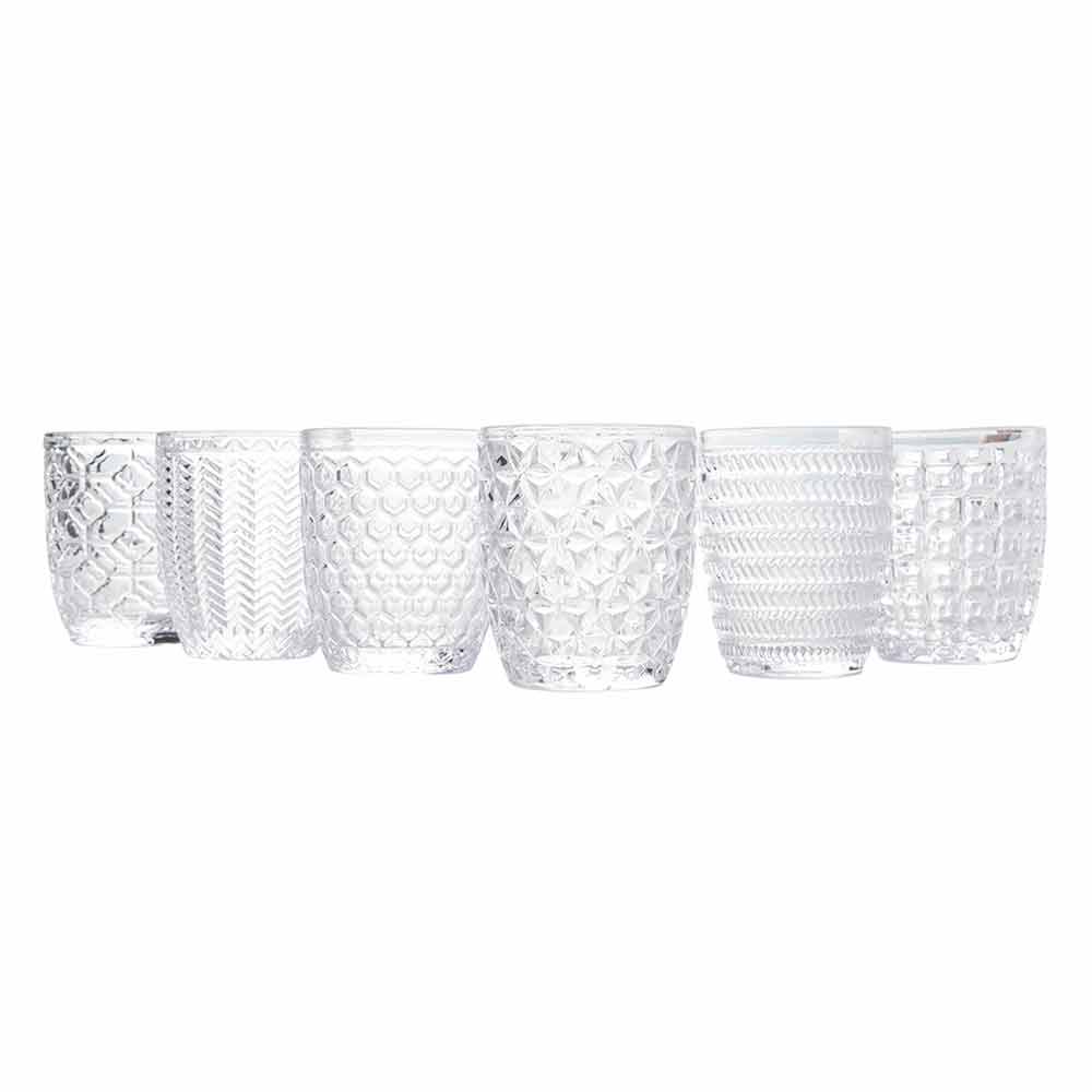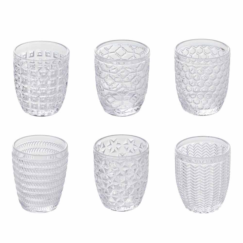 Uppsättning av glas för vatten av transparent glas dekorerad med olika geometrier, 12 stycken.