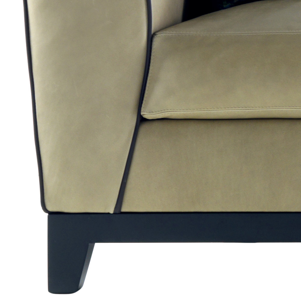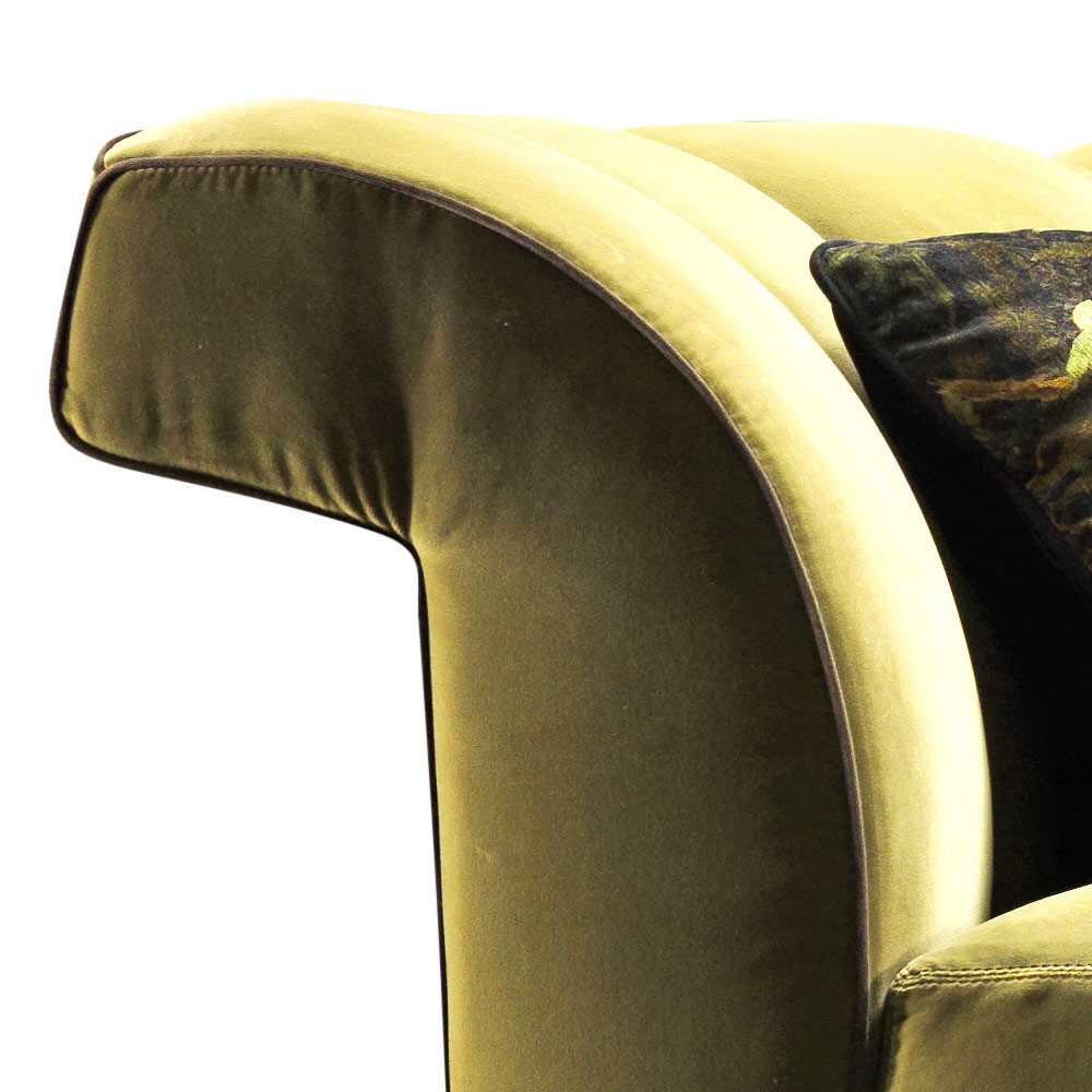 Handgjord i Italien med en struktur (bas, rygg och armar) i massivt bokskog; polstring i polyuretanskum med differentierat täthet, sitskudde i gås ner med en flexibel polyuretaninsats.