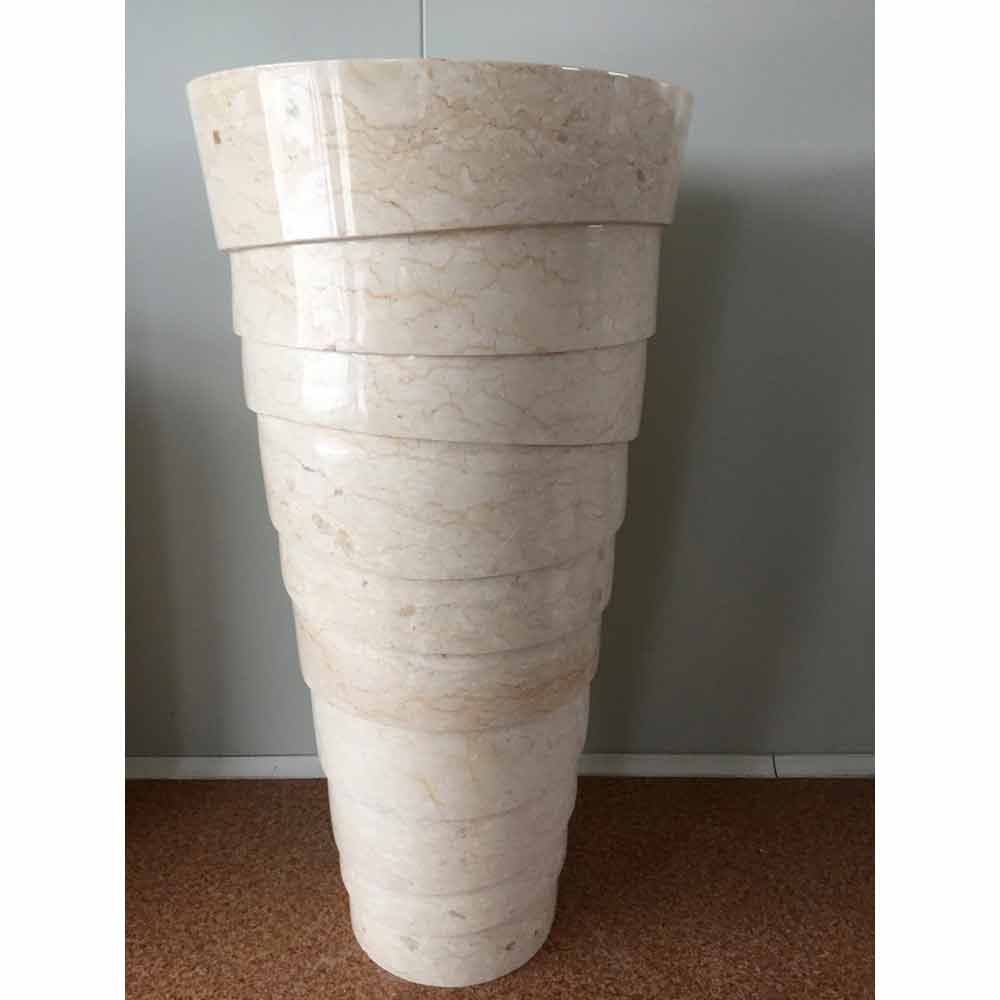 Fristående koniskt vitt handfat tillverkat av natursten Brent, unikt stycke