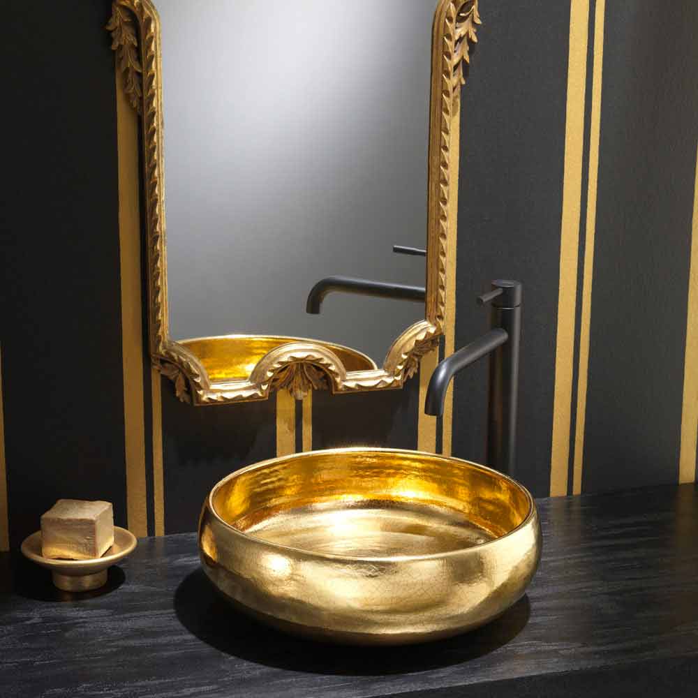 Design inbyggd handfat i guld raku keramik gjord i Italien, Ramon