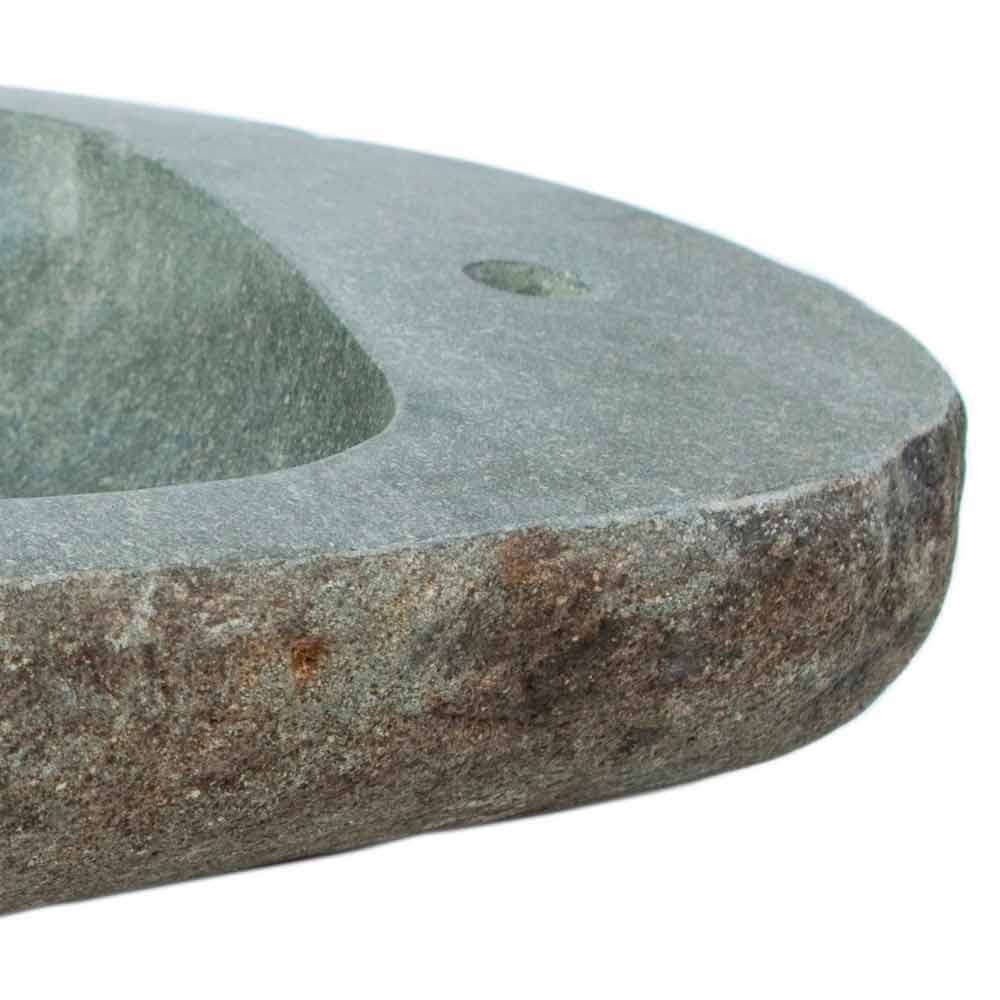 Handgjord tvättställ i natursten med borrhål. Färg: Flodsten